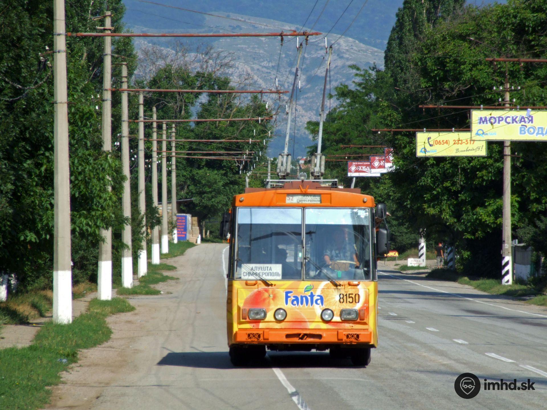 Na najdlhšej linke 52 zo Simferopoľa na Jaltu premávajú najčastejšie trolejbusy Škoda 14 Tr (na fotografii #8150 z roku 1990).