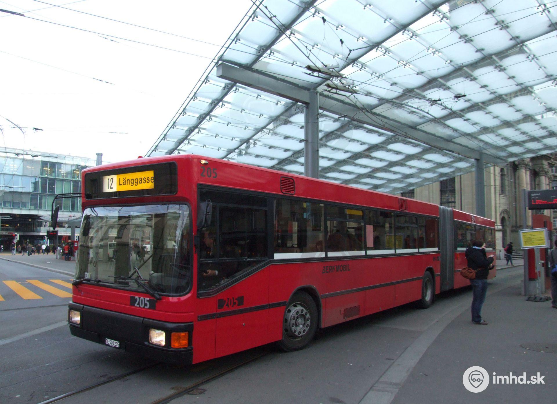 MAN SG 242 #205 odchádza z prestupného terminálu pred železničnou stanicou.