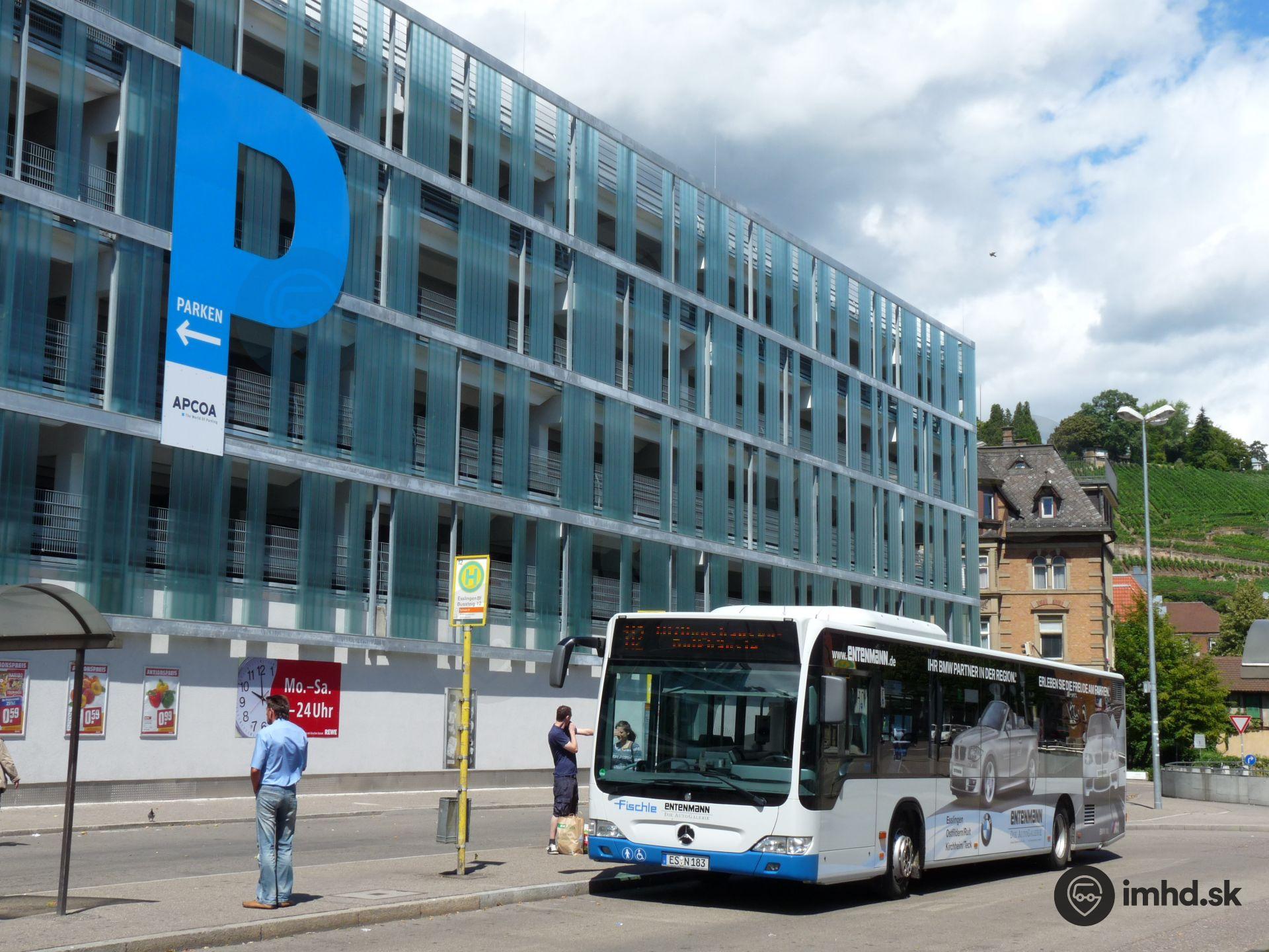Mercedes-Benz O 530 Citaro pred veľkým parkovacím domom na okraji centra.