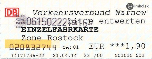 Rostock - jednorazový cestovný lístok.