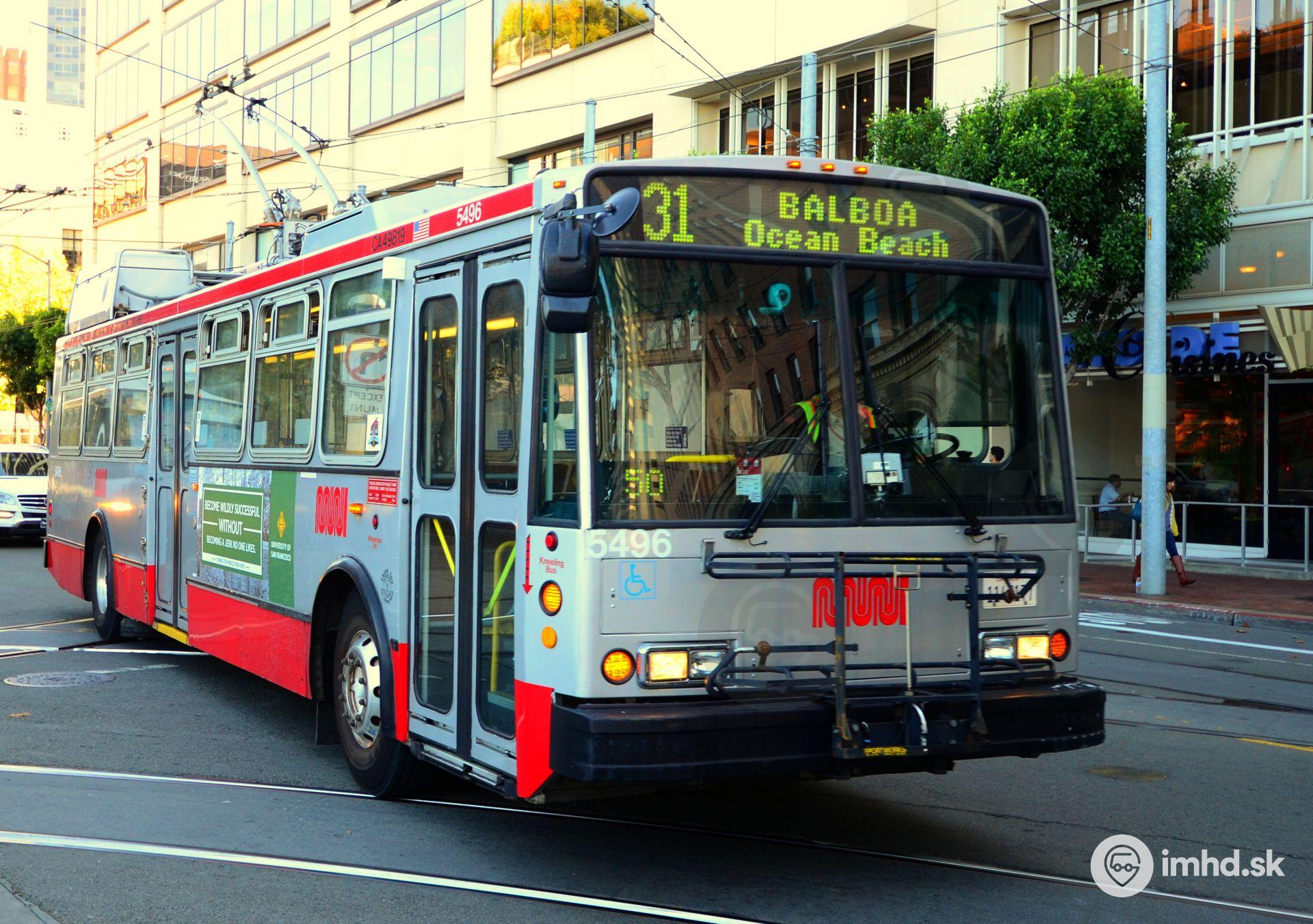 Trolejbus linky číslo 31 smer Balboa