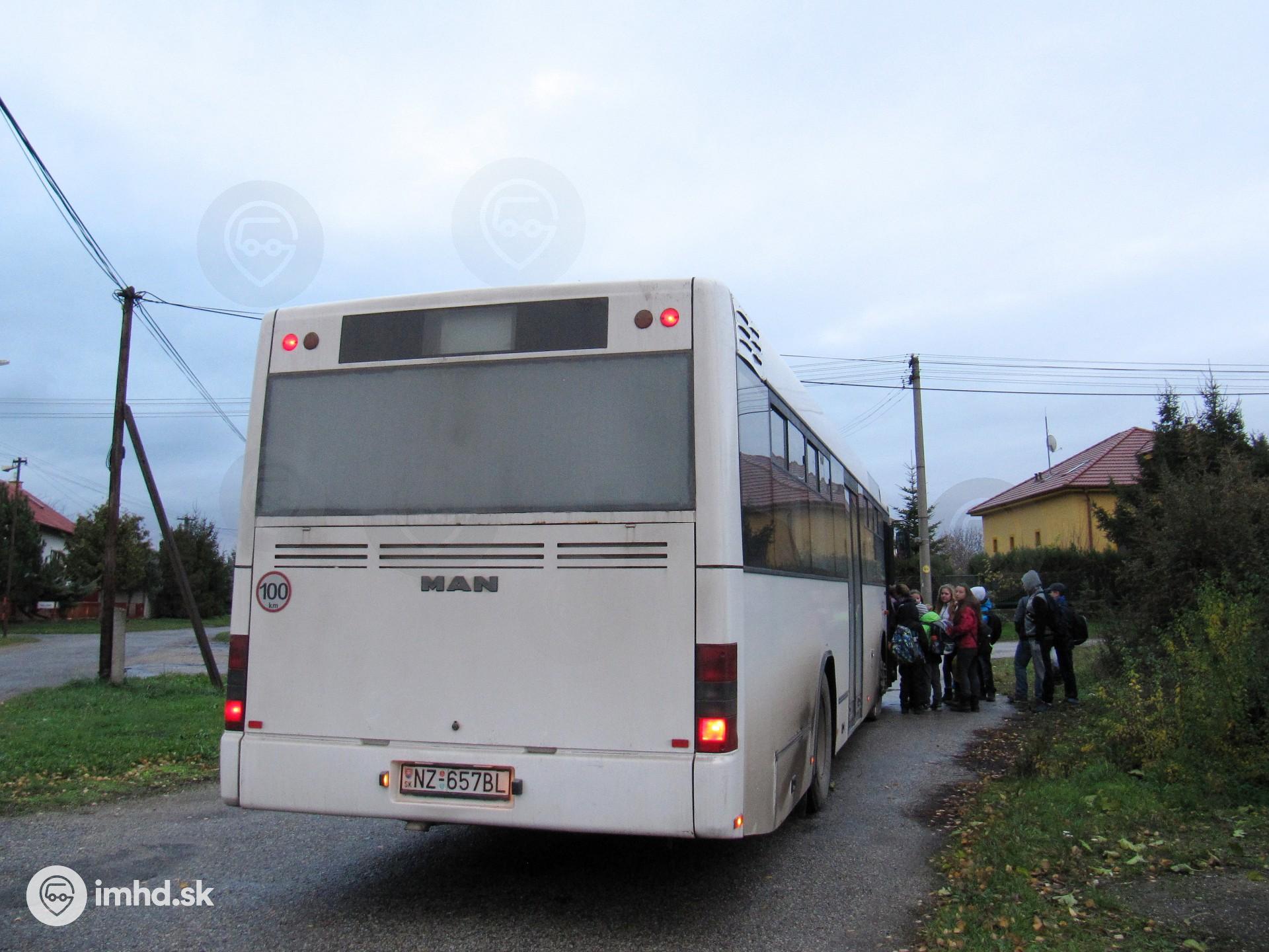 | MAN A74 #NZ-657BL na rannom spoji linky MHD z Nitrianskeho Hrádku. Väčšinu cestujúcich na tomto spoji tvoria žiaci dochádzajúci do školy v širšom okolí centra mesta. | |