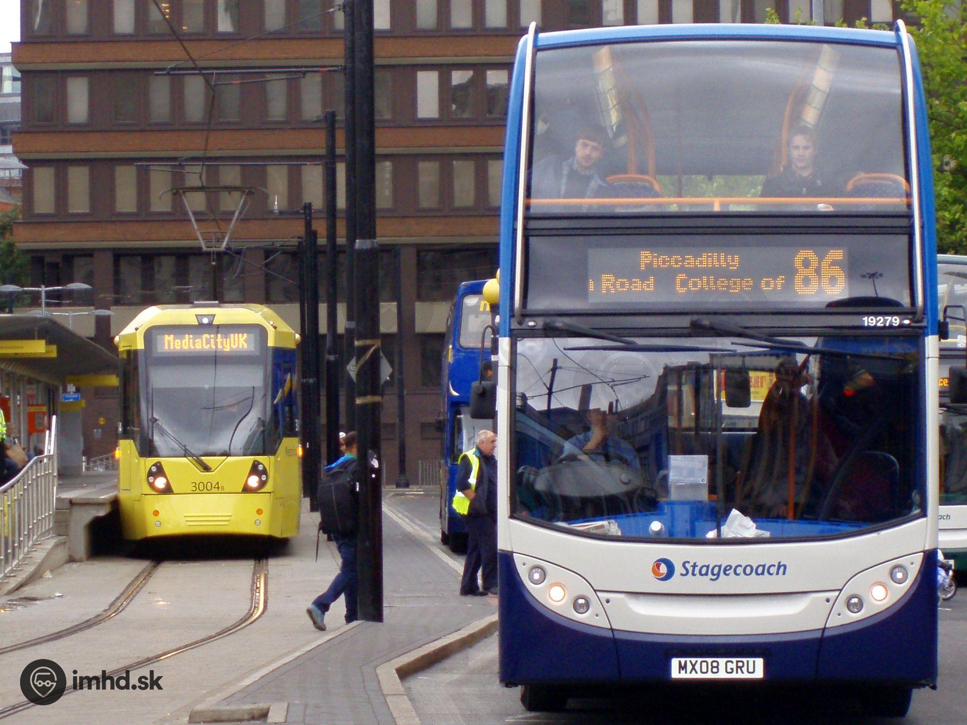 #19279, 3004, MX08 GRU, route MediaCityUK – Piccadilly, 86, Parker Street, Piccadilly Gardens