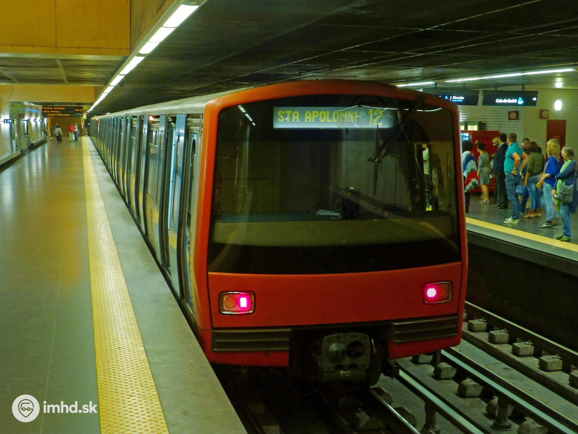 Súprava metra Siemens / Sorefame ML 99 v stanici metra Baixa-Chiado.