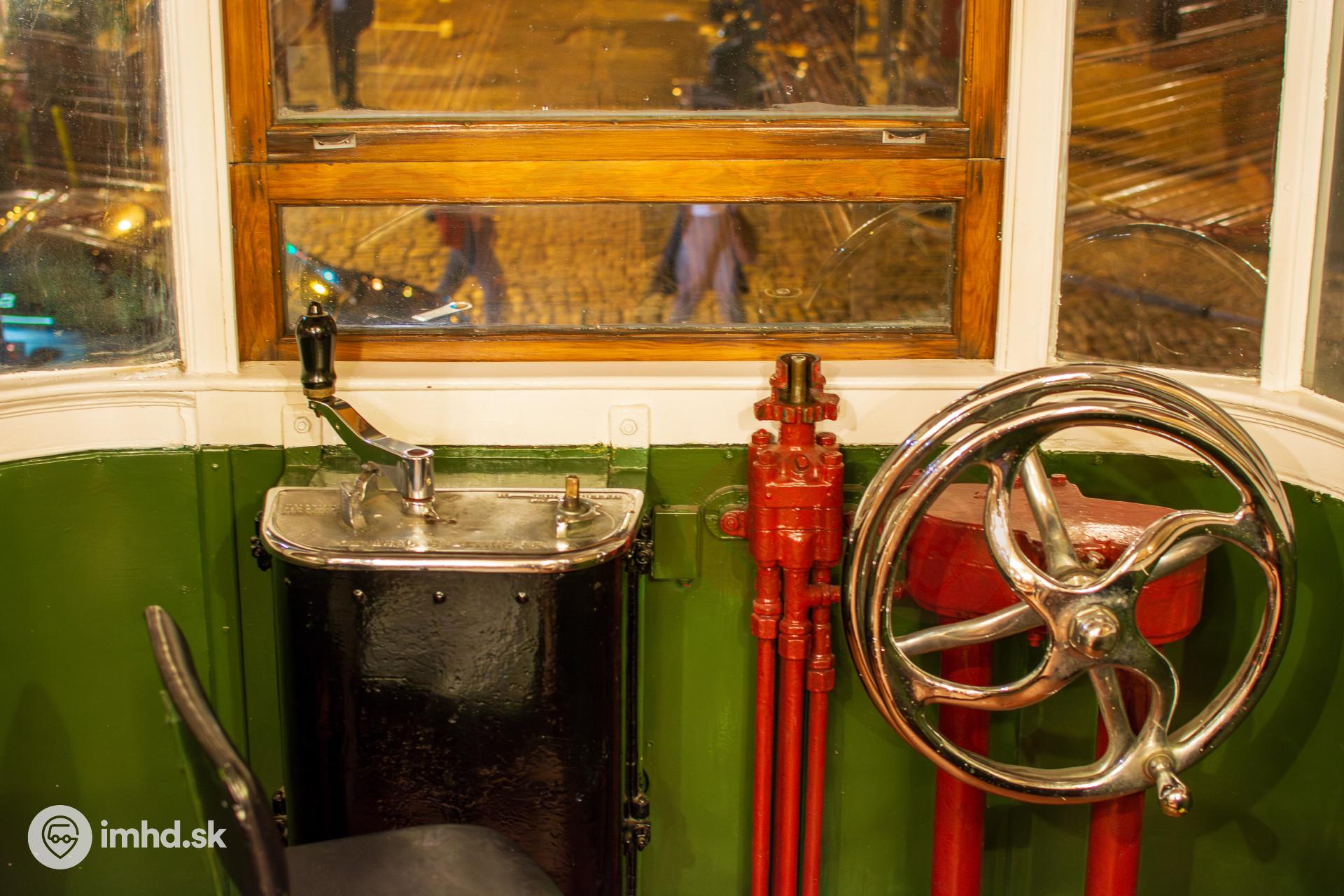 Pohľad na pracovisko vodiča vo vozni linky Elevador de Lavra.
