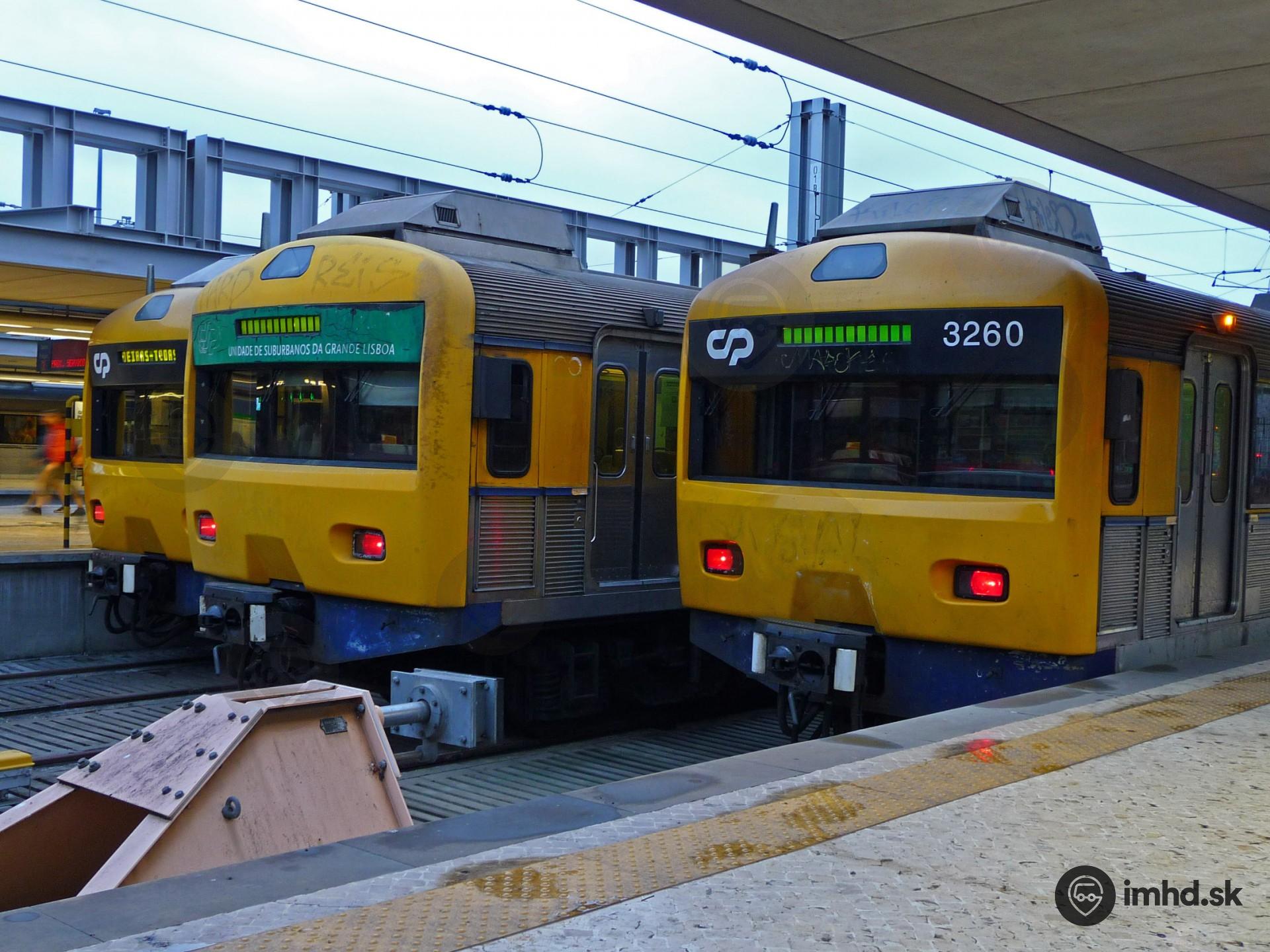 Vlaky lokálnej železnice Lisabon - Cascais v konečnej stanici Cais do Sodré.