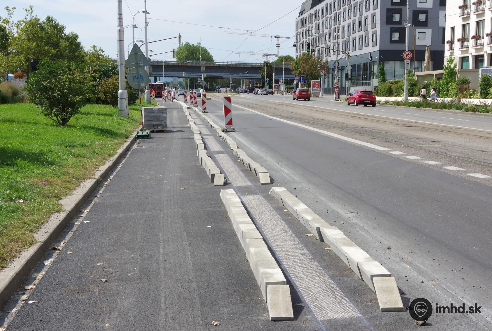 | Cyklopruh bude od vozovky oddelený obrubníkom, električková trať nie. | |