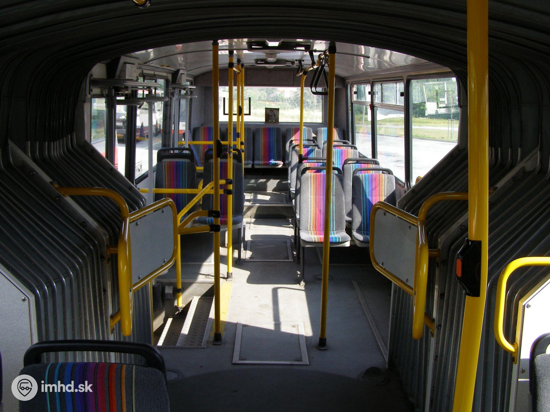 Interiér Karosy B 961.1970 #4395 s demontovaným tarifným systémom počas letných prázdnin roka 2009, kedy boli vozidlá pre nadbytočnosť odstavené.