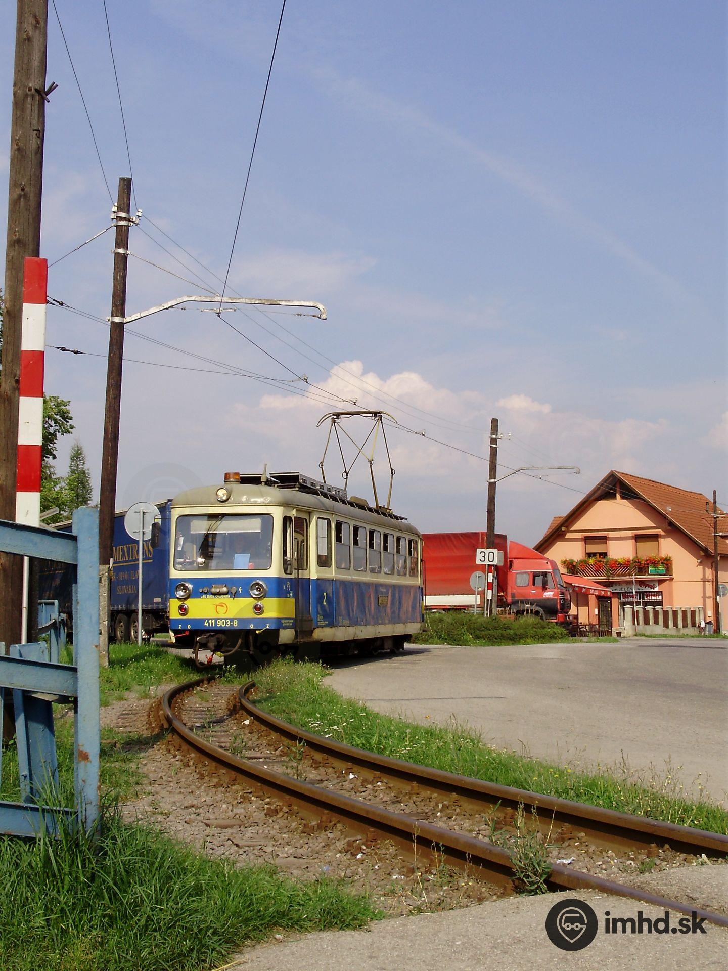Oblúkom smerom do Trenčianskych Teplíc prechádza #411.903-8 .
