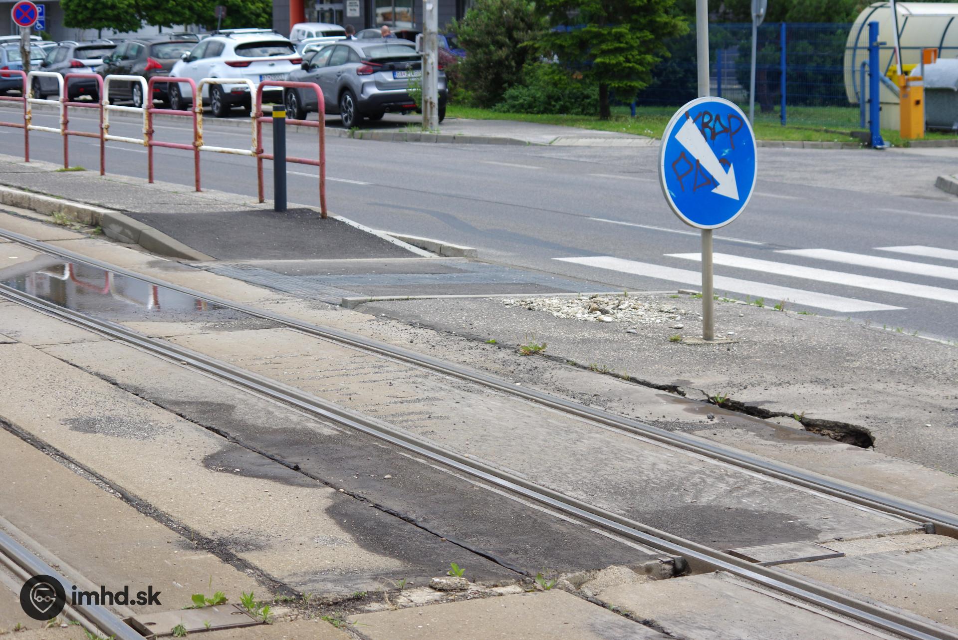 Električková trať na Vajnorskej pred opravou (9.6.2022)