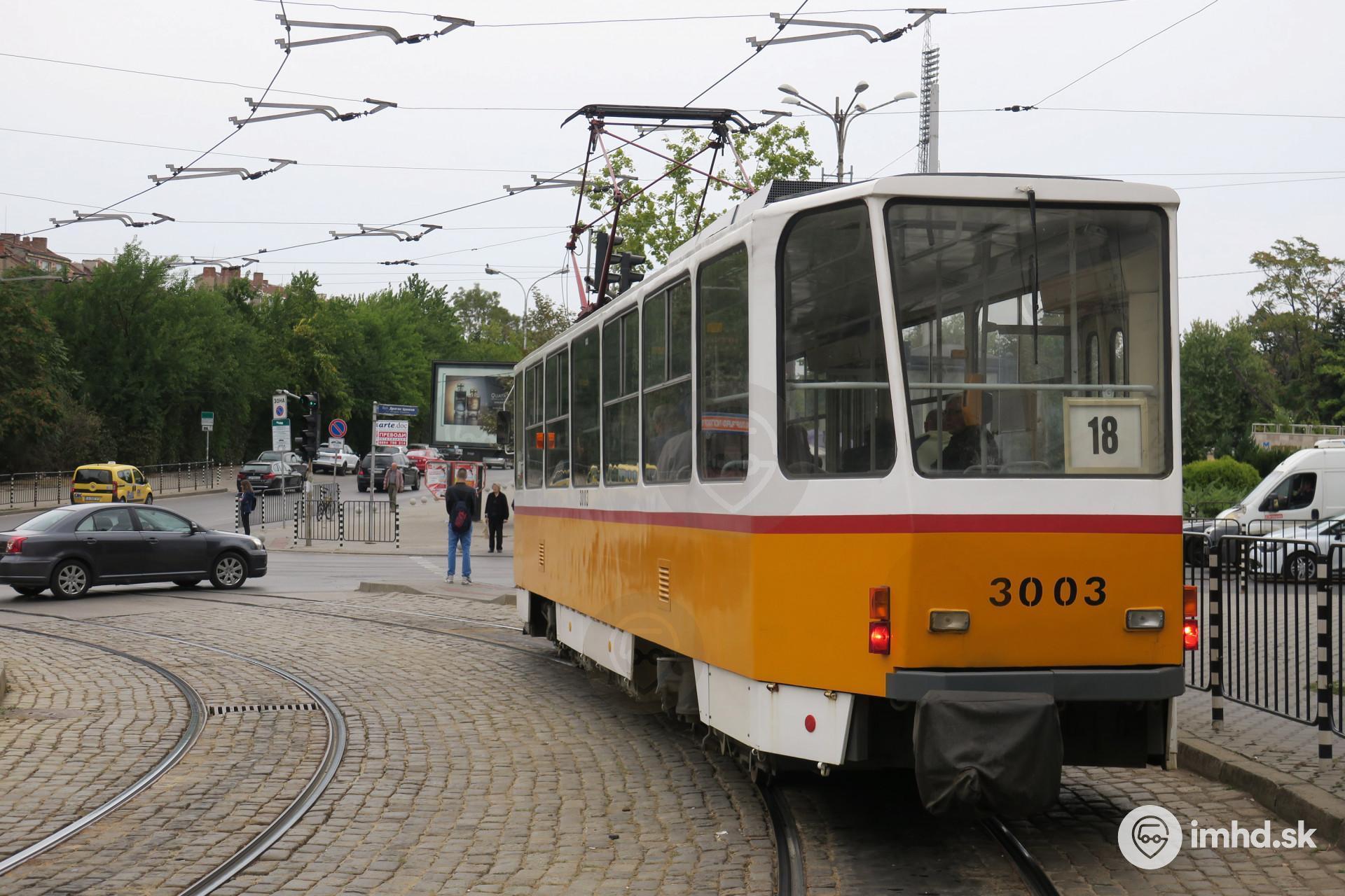 T6A2 #3003 čaká na signál voľno na radiále smerom do centra Sofie.