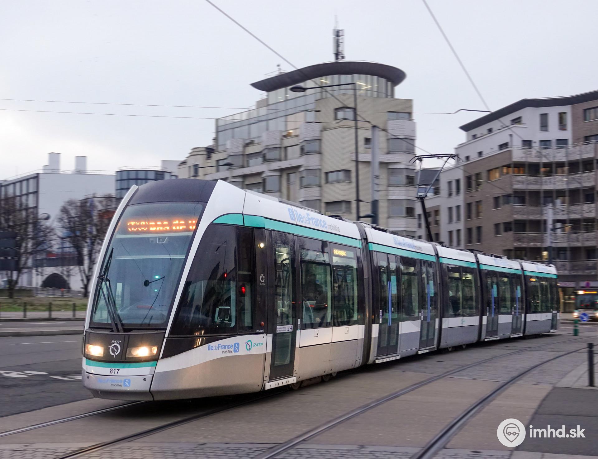 Citadis ešte v pôvodnom nátere RATP, avšak už s belasými prvkami Île-de-France Mobilités.