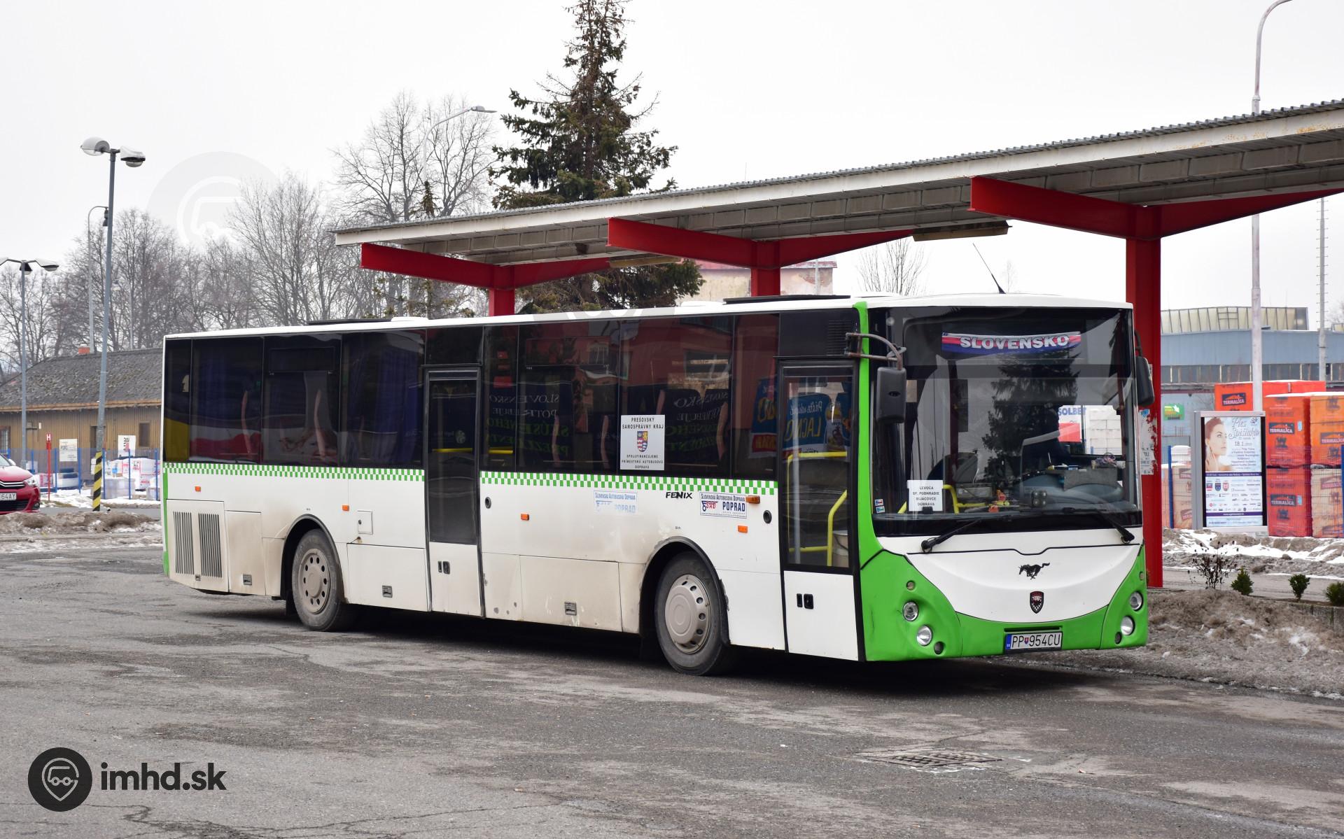Atypický Troliga Fenix s prvkami autobusov radu Pegasus počas prestoja na levočskej autobusovej stanici.