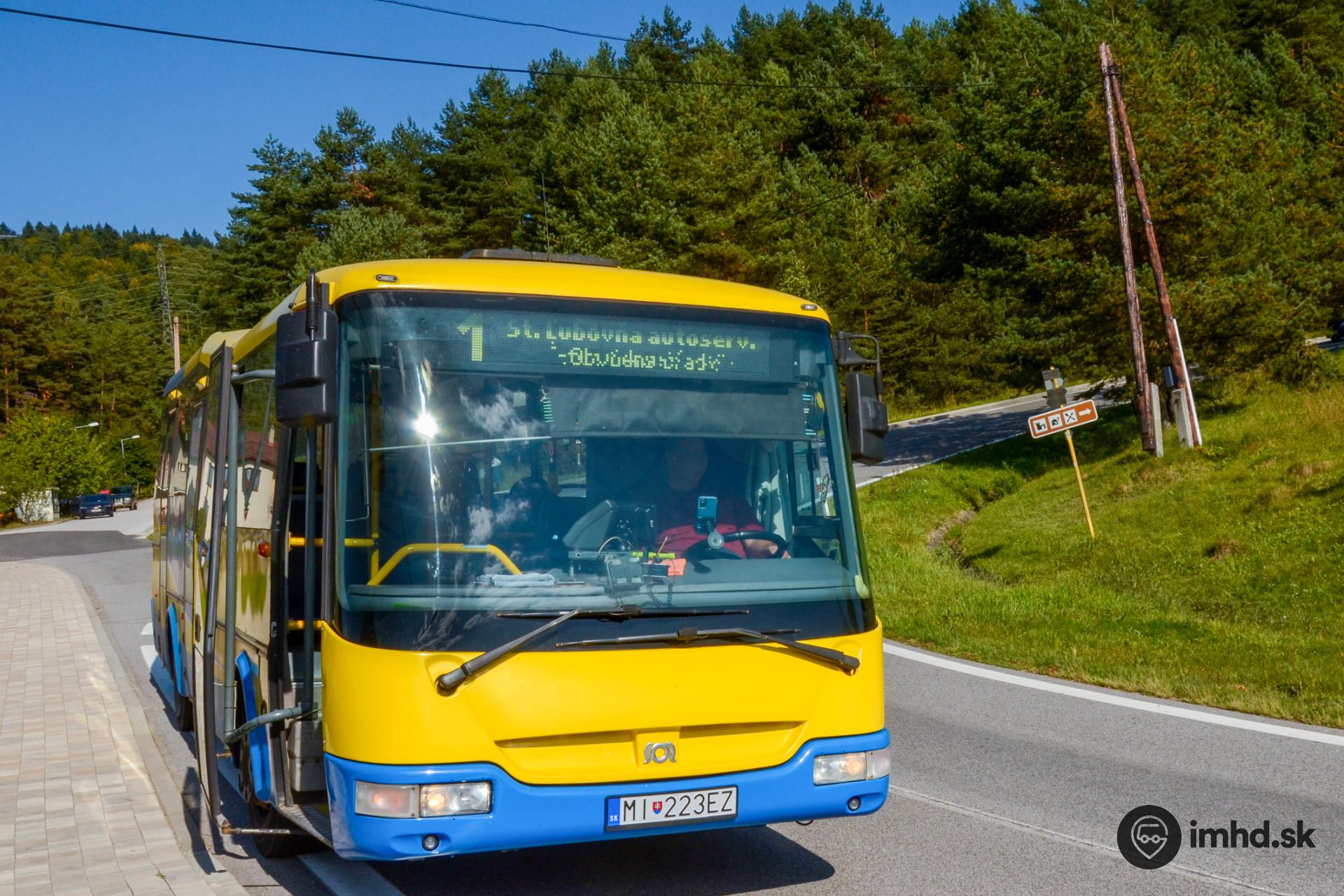 Autobus #MI-223EZ na linke 1, ktorá spája Ľubovniansky hrad s centrom mesta, sídliskom Západ a priemyselnými areálmi pred Novou Ľubovňou