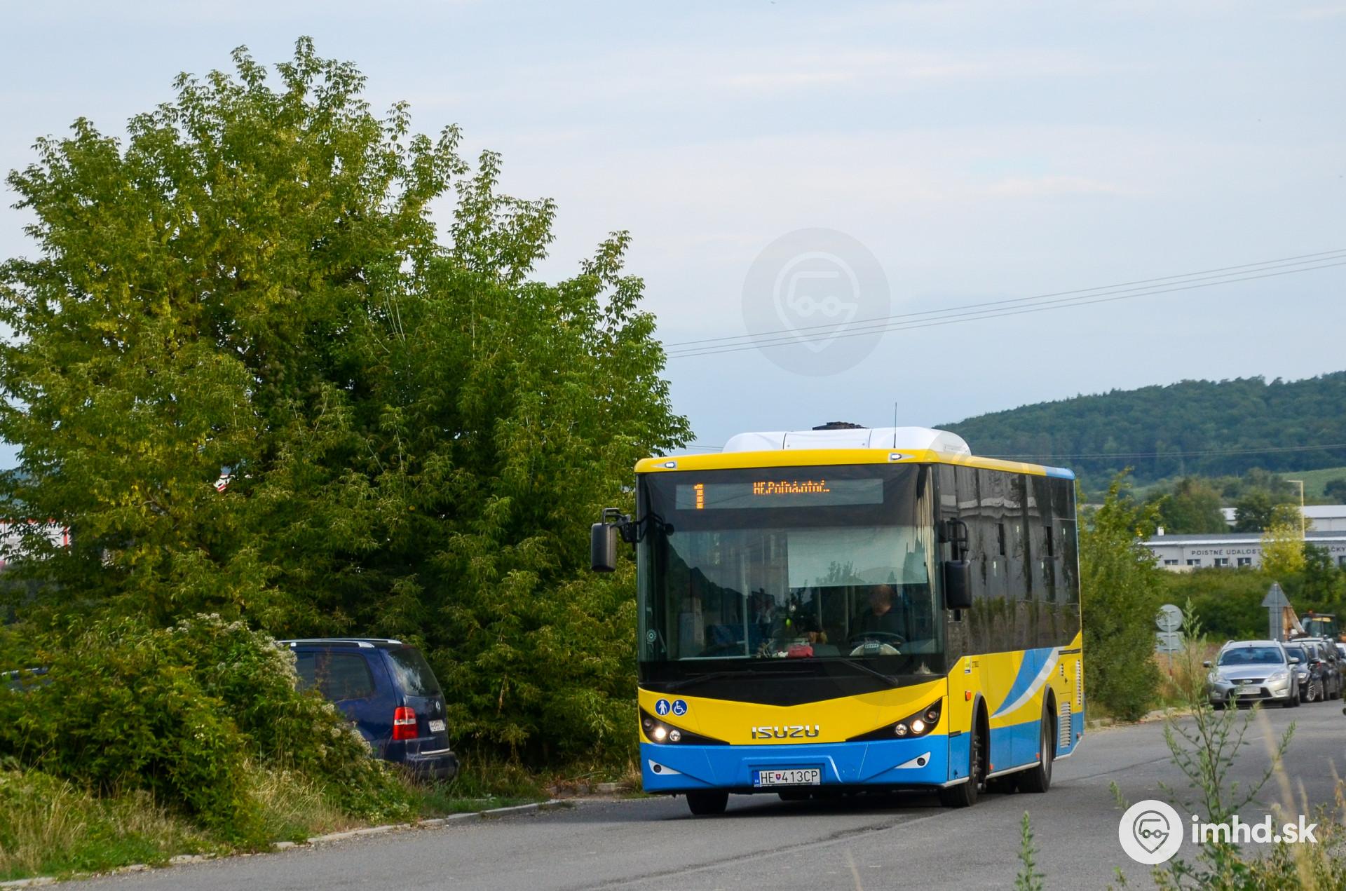 Autobus #HE-413CP na linke 1 obsluhuje priemyselný areál Chemlonu