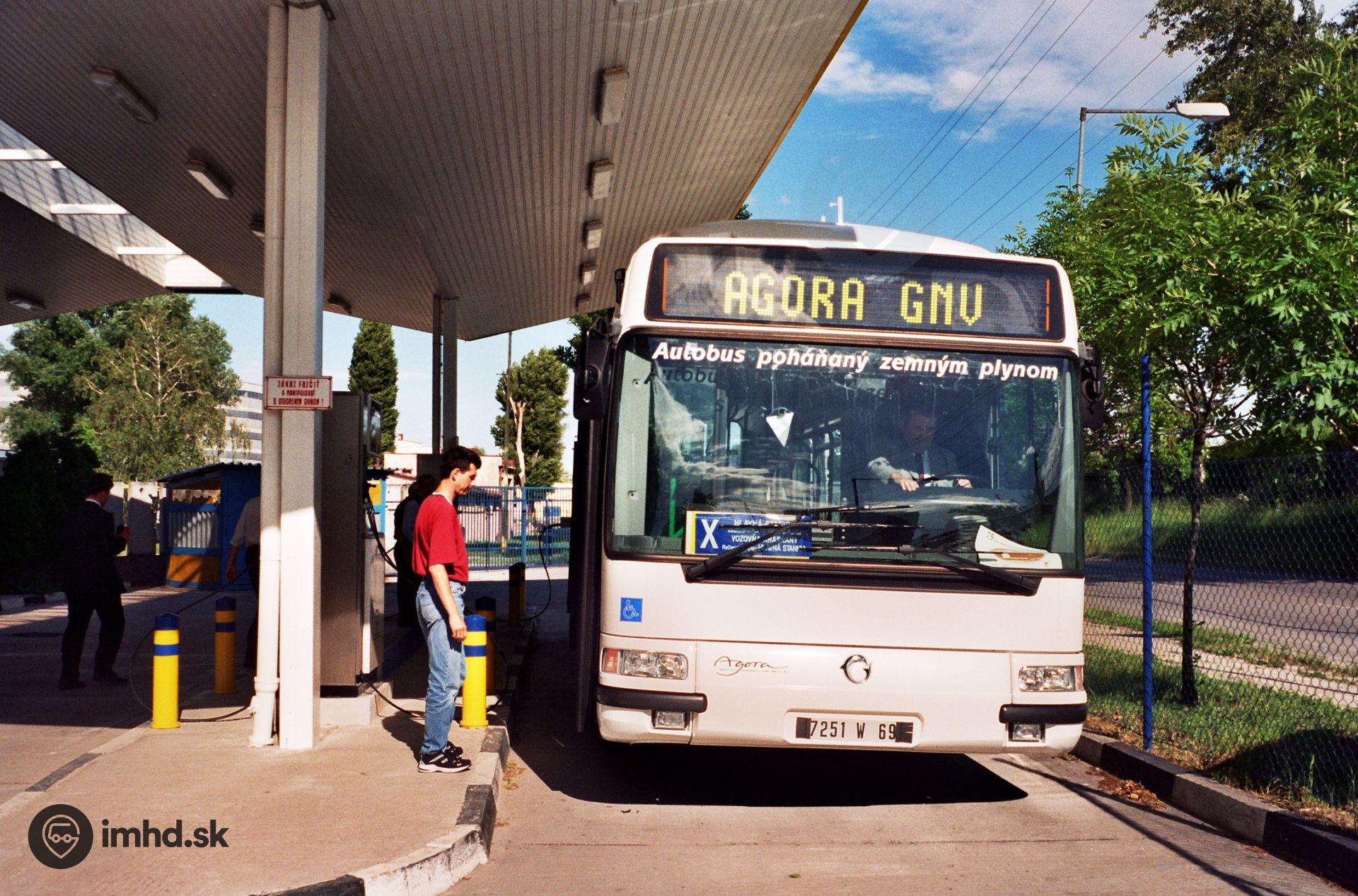 Testovací autobus Renault Agora GNV na plničke zemného plynu.