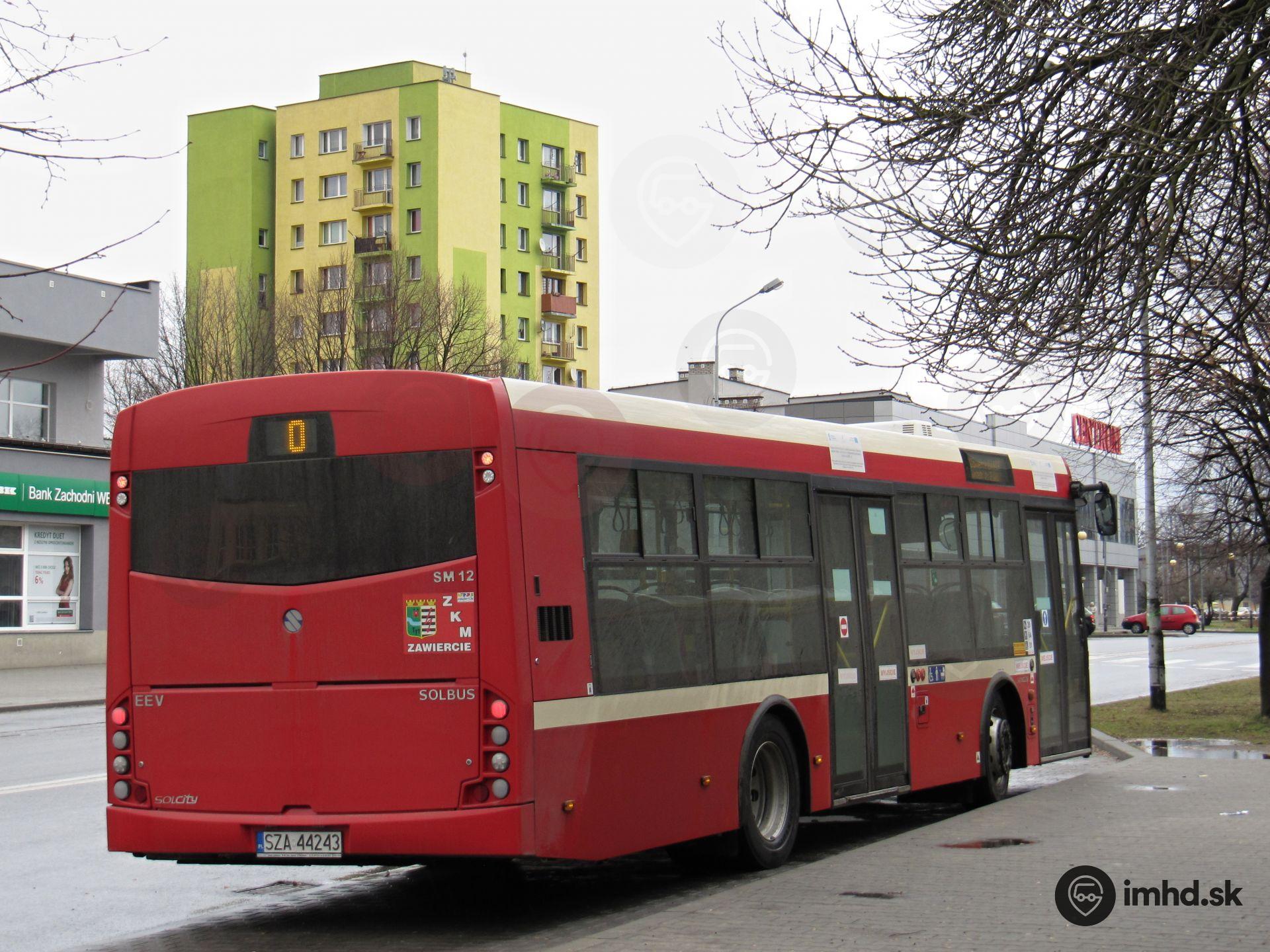 Solbus Solcity SM 10 #160, chybne označený ako SM 12, na zastávke pri železničnej stanici.