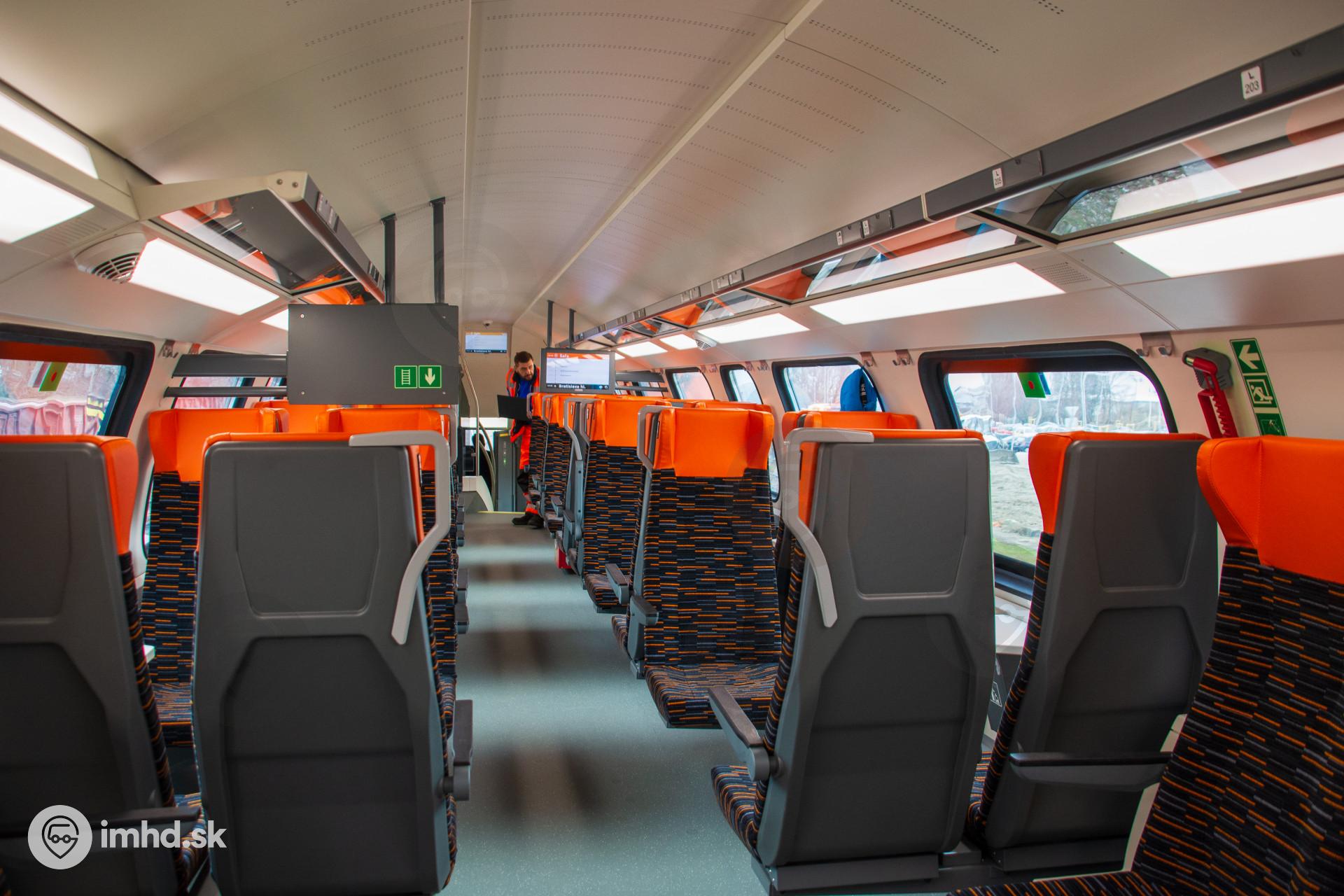 Horné poschodie elektrickej jednotky Stadler KISS s miestami 2. triedy.
