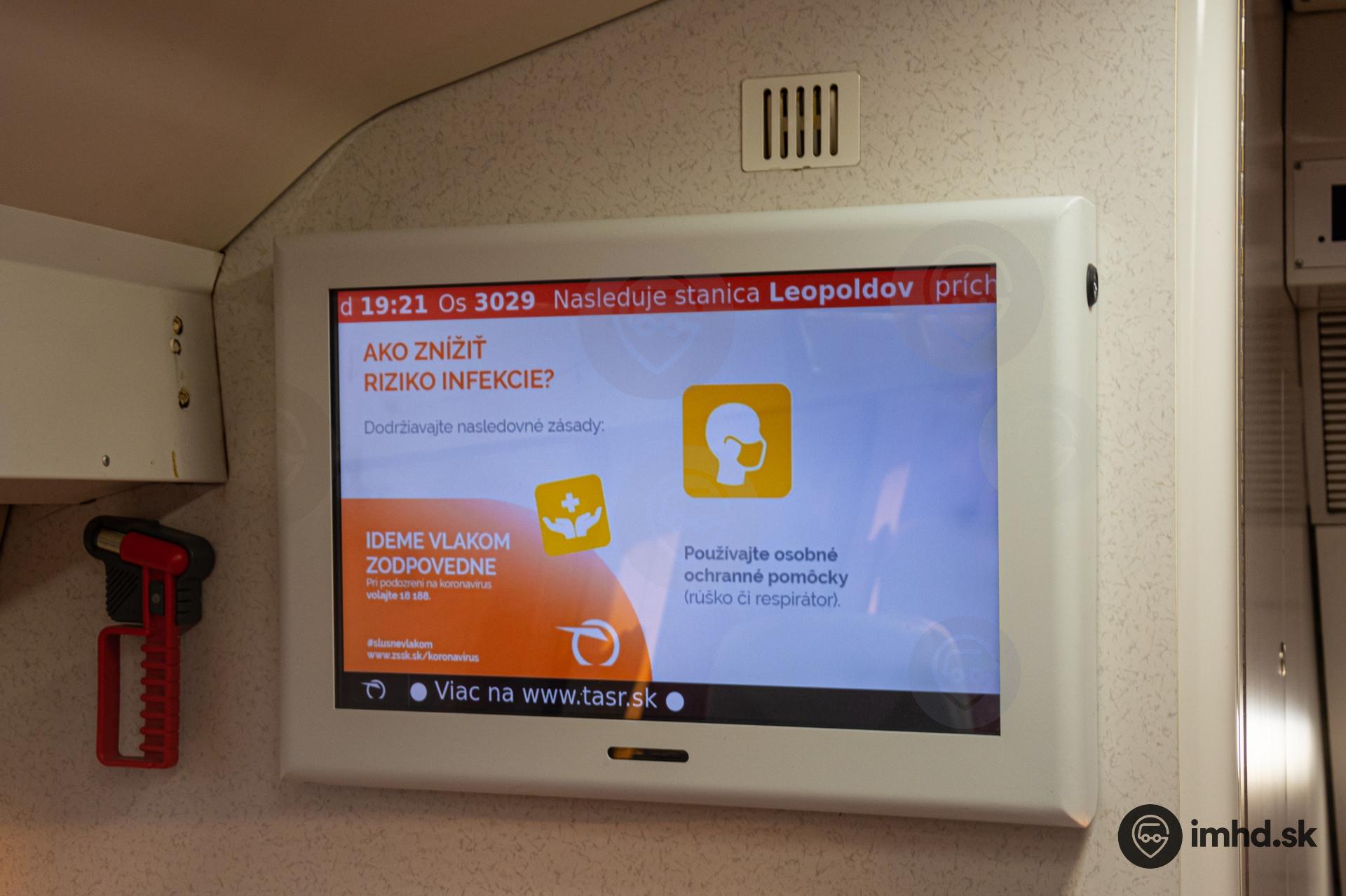 Počas pandémie koronavírusu COVID-19 ZSSK informovala cestujúcich o hygienických opatreniach aj prostredníctvom obrazoviek v súpravach Push-Pull