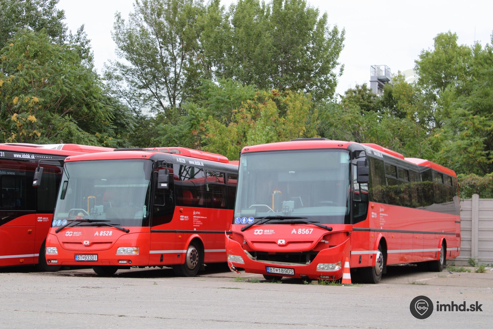 #8567 po nehode čakajúca na opravu zatiaľ čo #8528 čaká kým vodič nezačne službu.