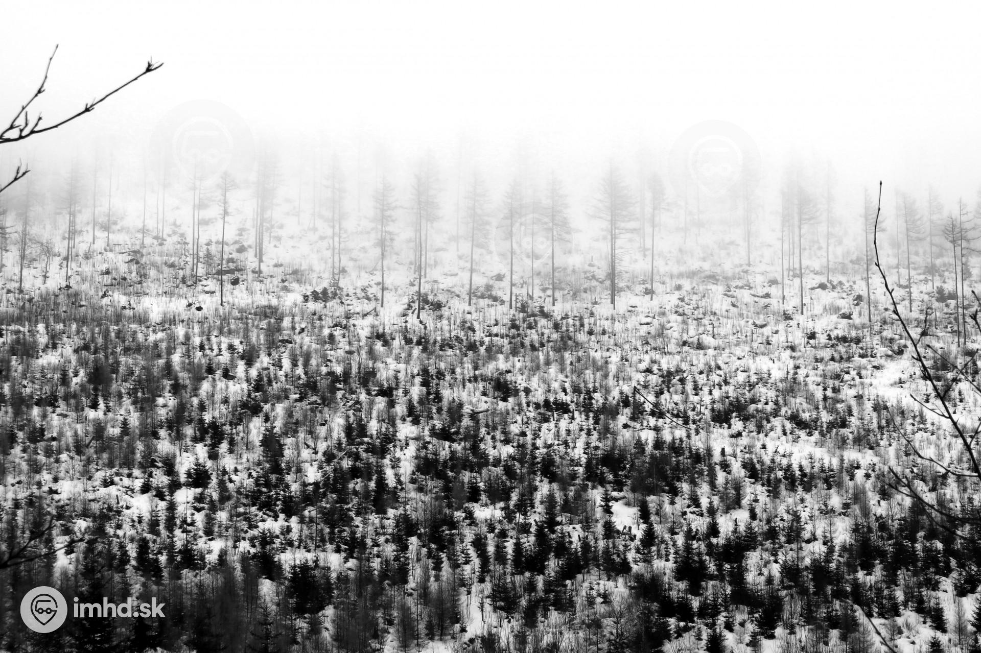 Čiernobiely les nad zastávkou Popradské Pleso