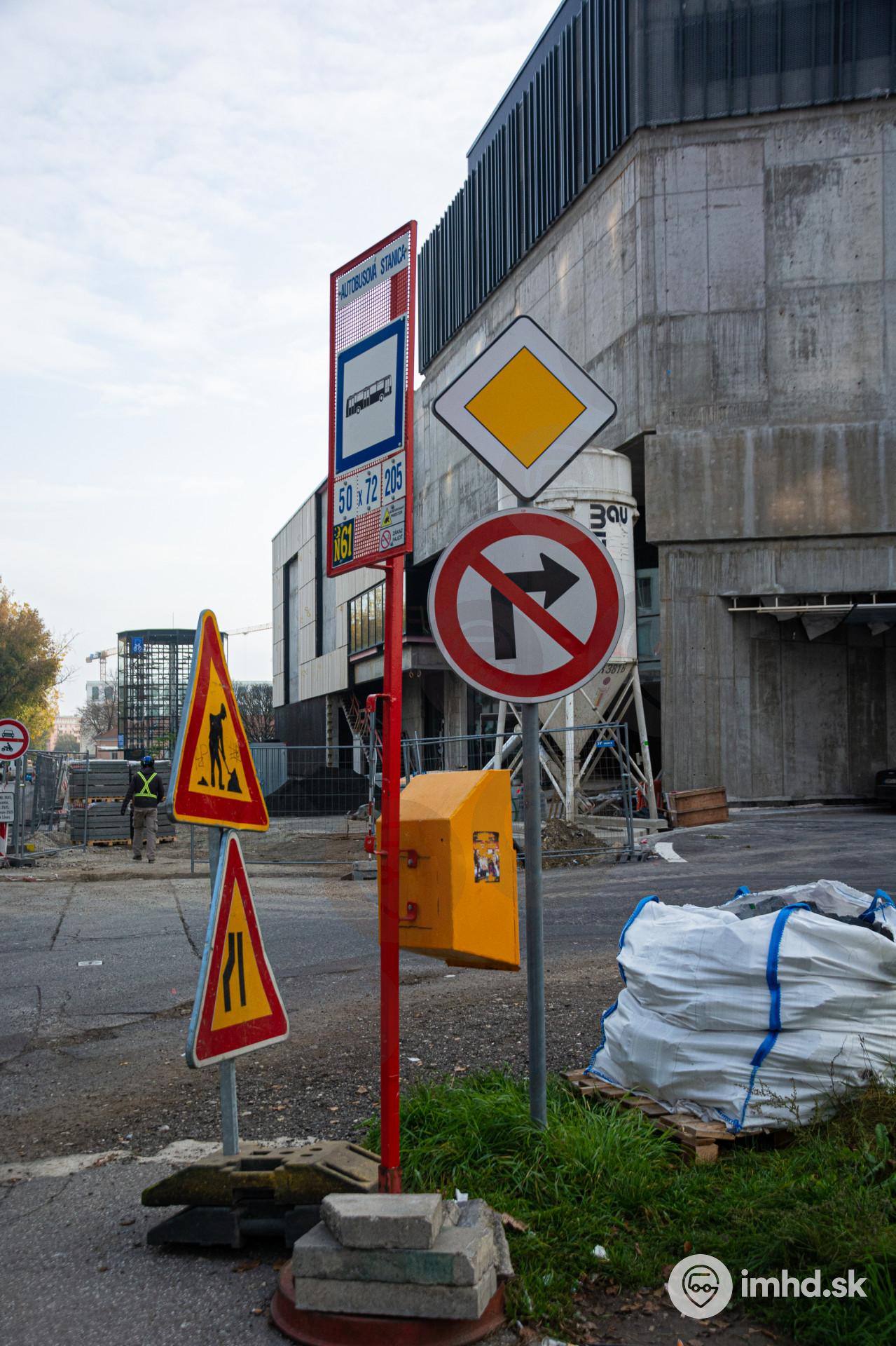 Dočasný označník zastávky Autobusová stanica.
