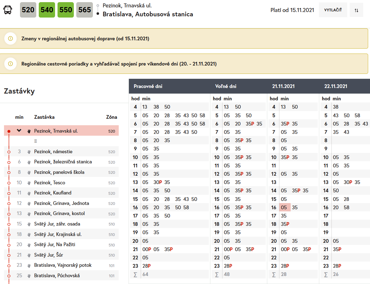 Redukovaný CP z Pezinka do Bratislavy.