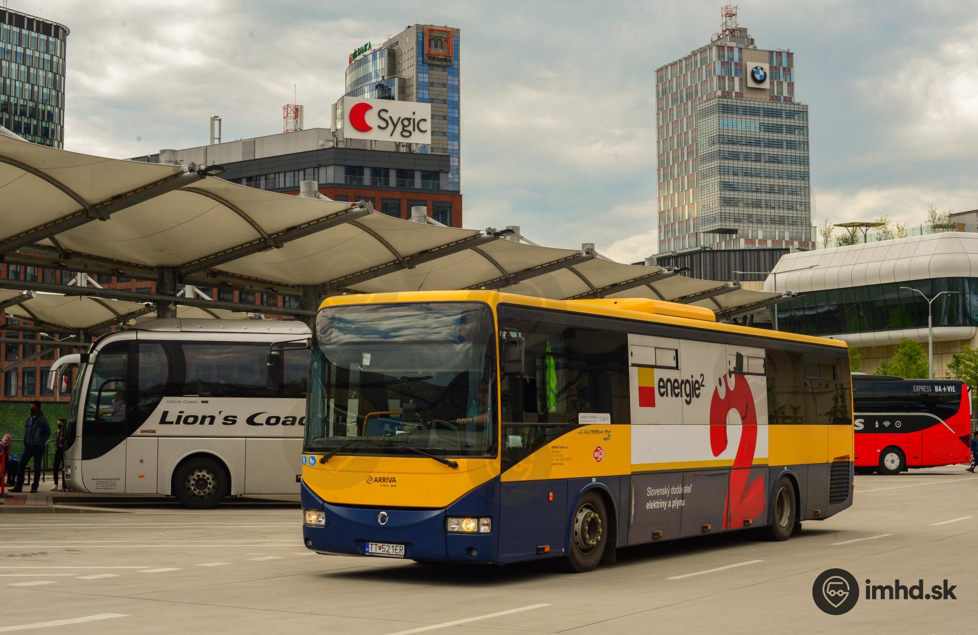 Žlto-modrý Crossway dopravcu Arriva Trnava.