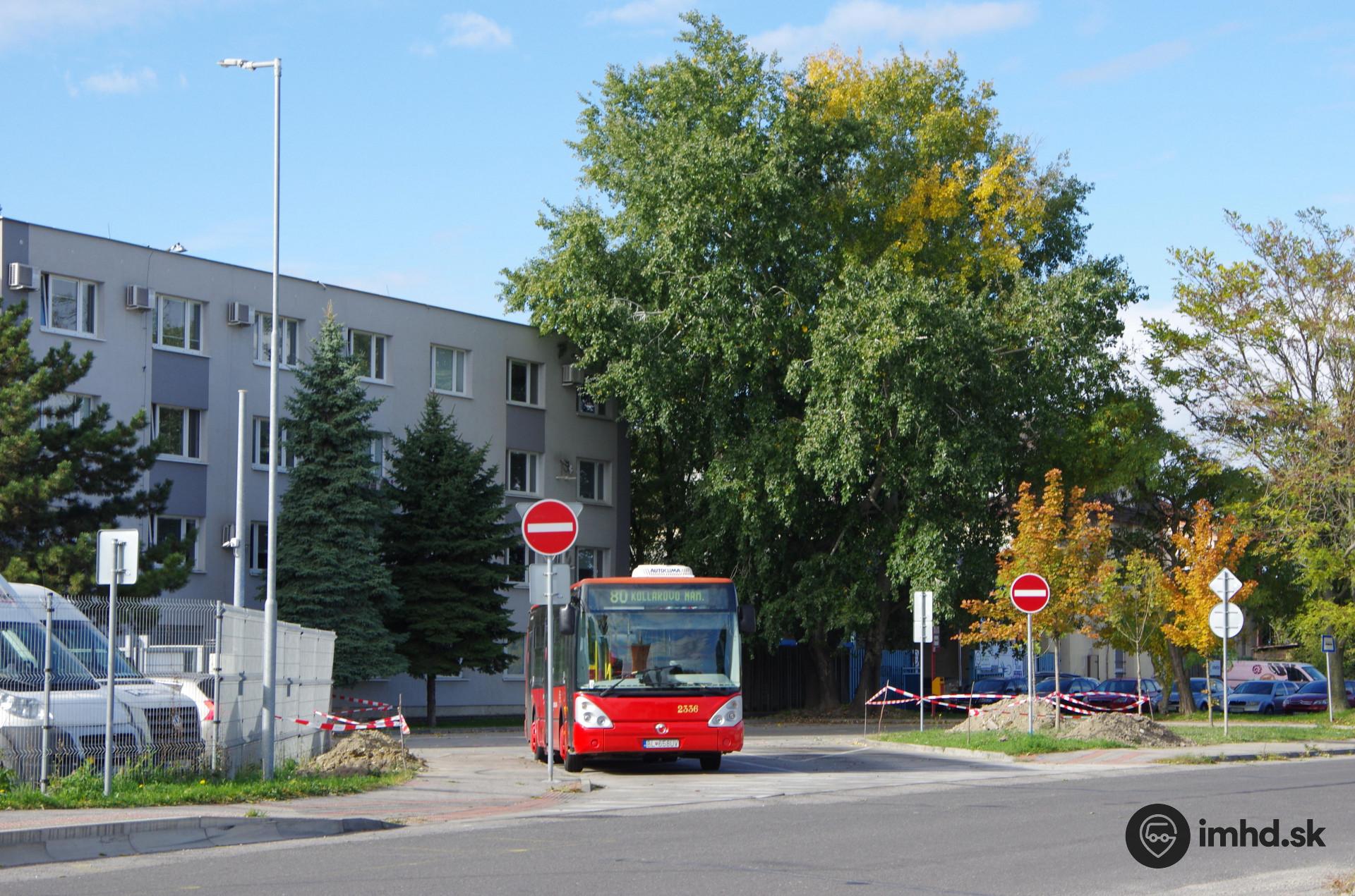 Autobus linky 80 na obratisku Kopčany krátko pred presmerovaním tejto linky k Nestu.