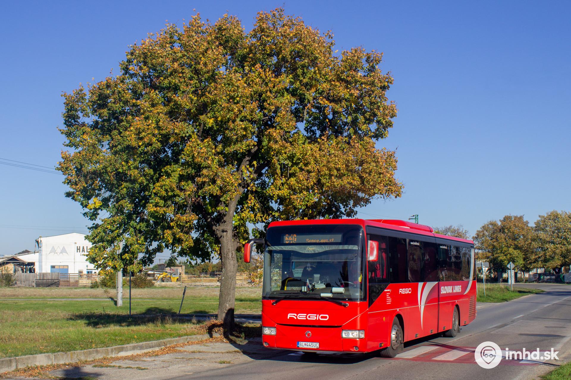 Jediný autobus Irisbus Arway jazdiaci na linkách Slovak Lines prechádza okolo zastávky Senec, Družstevná ul.