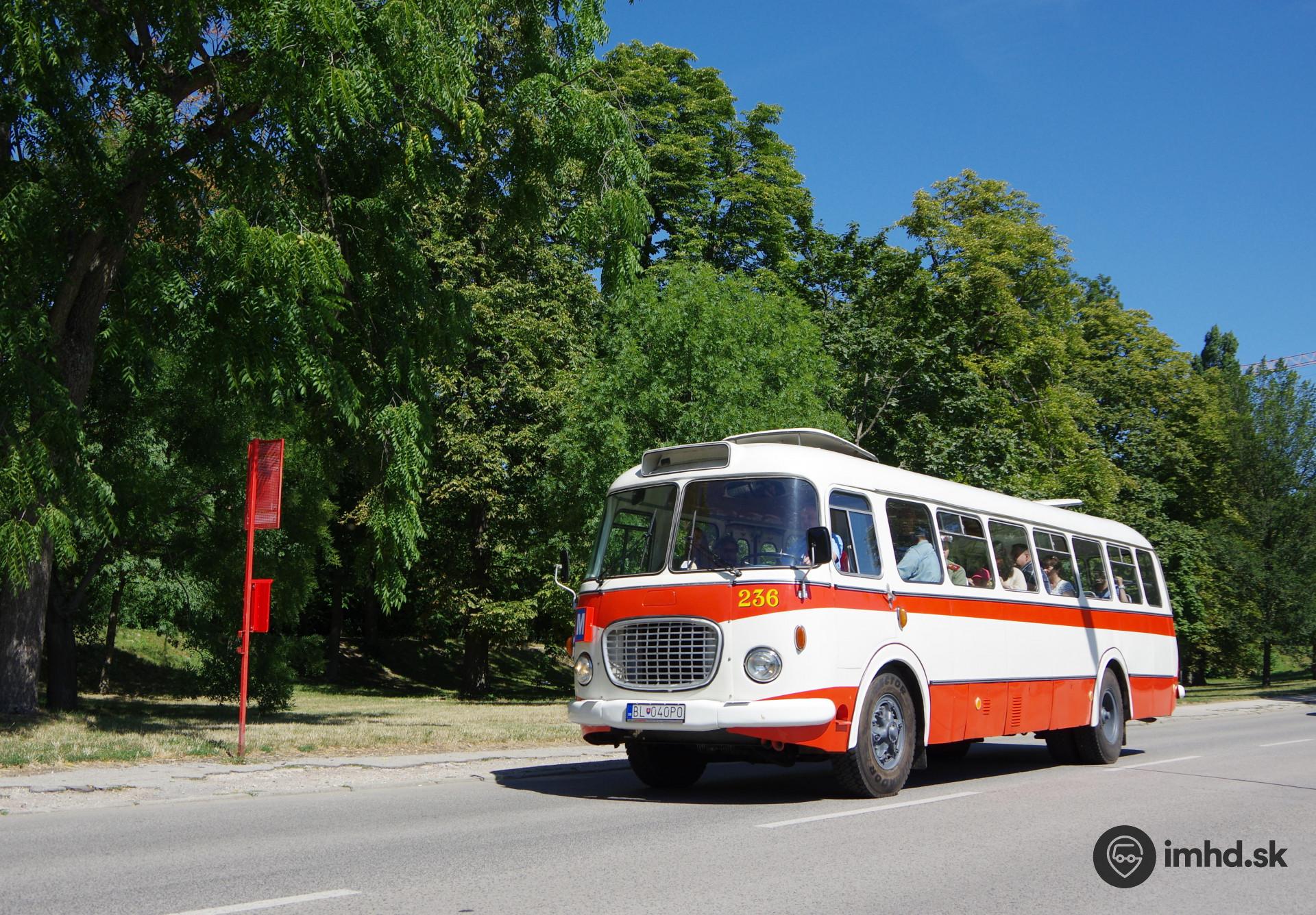 Historická Škoda 706 RTO prechádza okolo historického Sadu Janka Kráľa