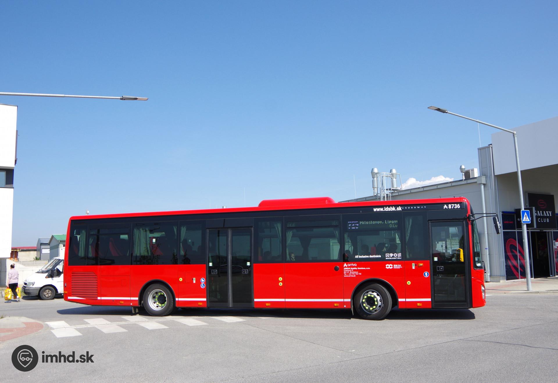 #8736 odchádza zo zastávky Rovinka, City Park