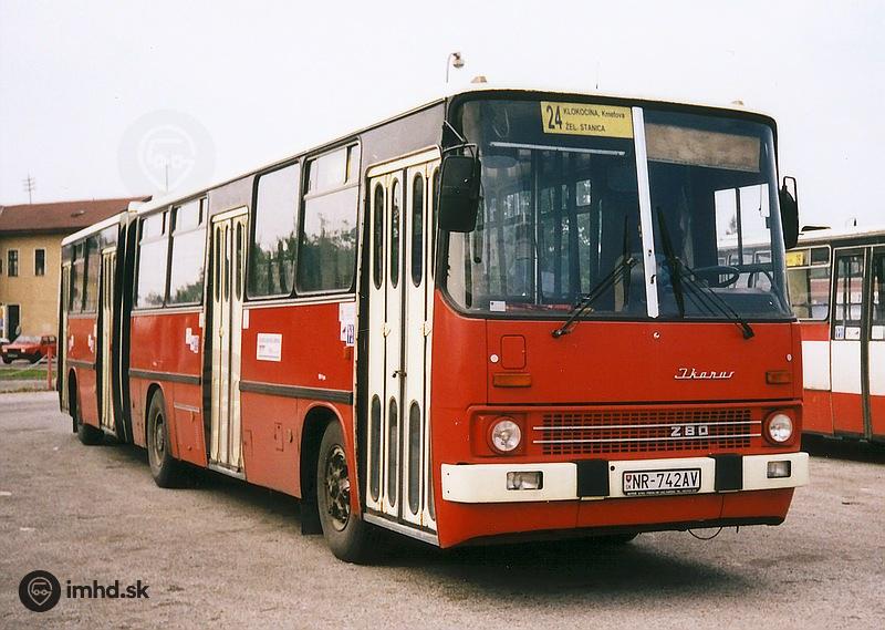 Ikarus 280.08 - v tom čase najpočetnejšie zastúpená značka kĺbových vozidiel v Nitre - na konečnej linky 24 pri Železničnej stanici.