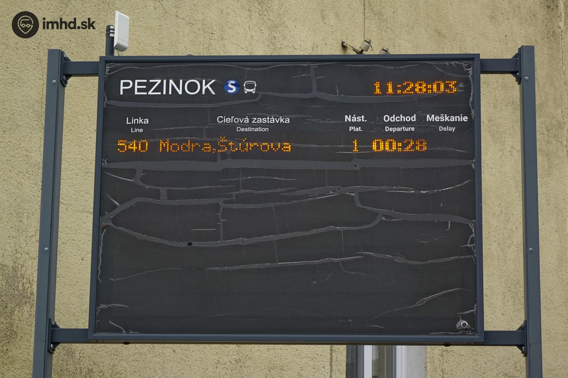 Zastávková informačná tabuľa na stanici Pezinok.