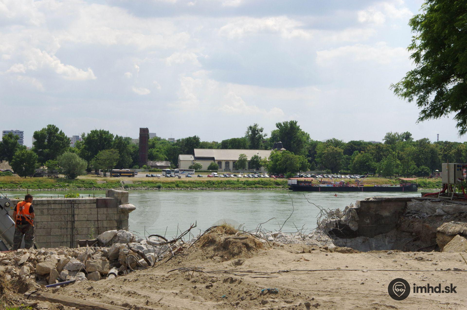 Rozoberanie časti opory č. 1 Starého mosta.