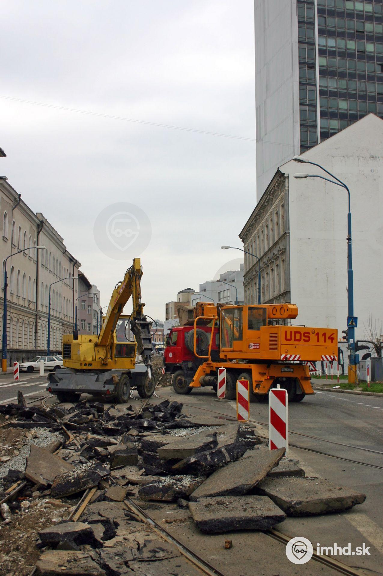 Trať na Radlinského ul. pred, počas a po rekonštrukcii (4.7.2005)