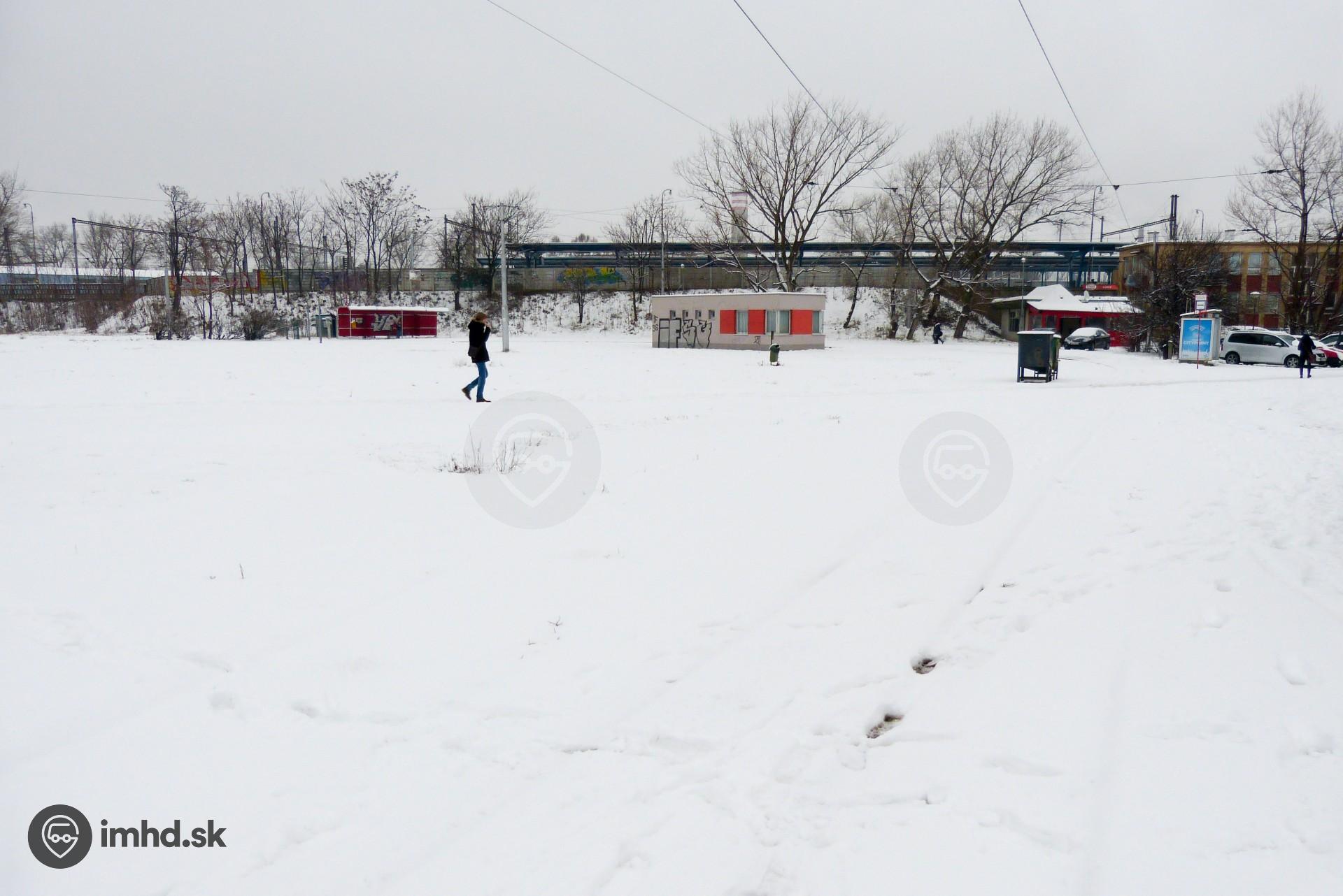 Neodhrnuté obratisko električiek ŽST Nové Mesto.