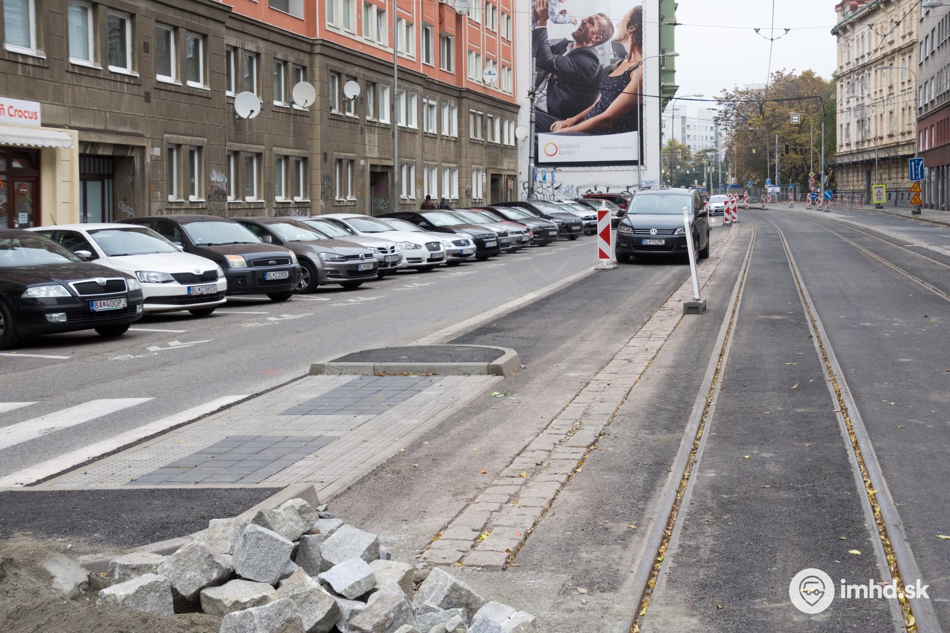 | Zrušená zastávka Mariánska počas rekonštrukcie slúži na parkovanie. | |