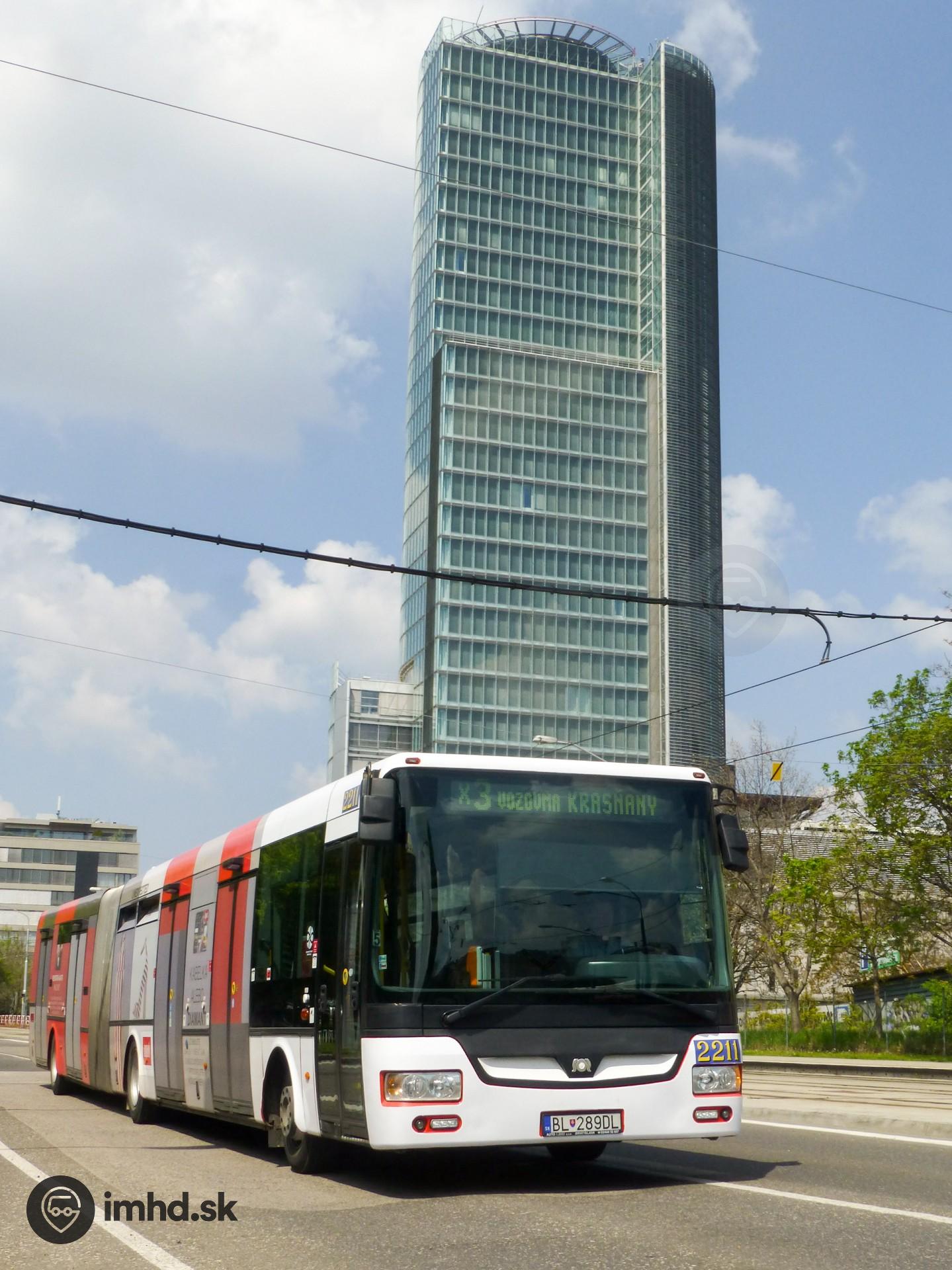 #2211 na linke náhradnej dopravy za električky v úseku Blumentál - Vozovňa Krasňany.