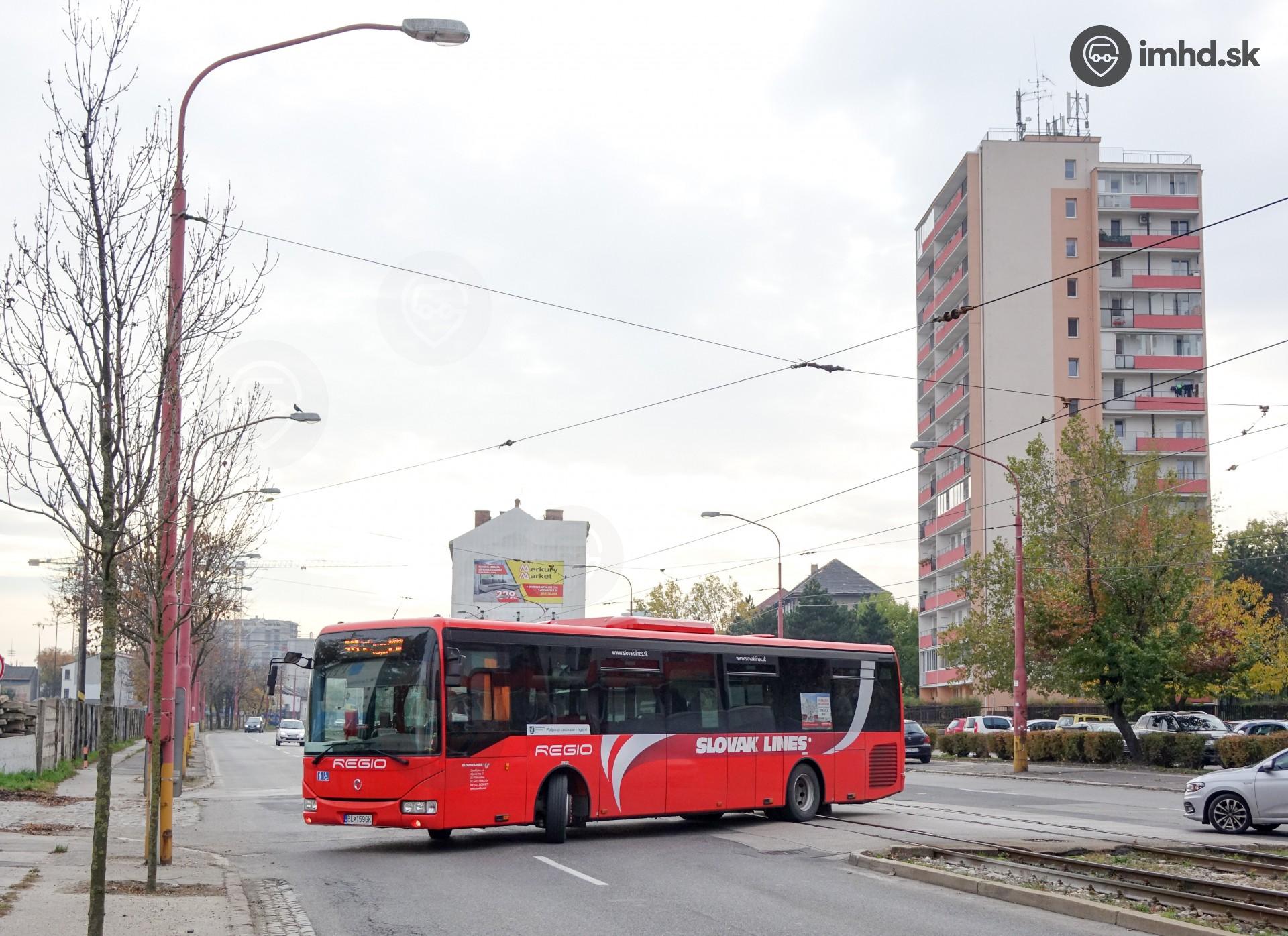 | Iveco Crossway LE 12M obchádza uzatvorené priecestie Pionierska. | |