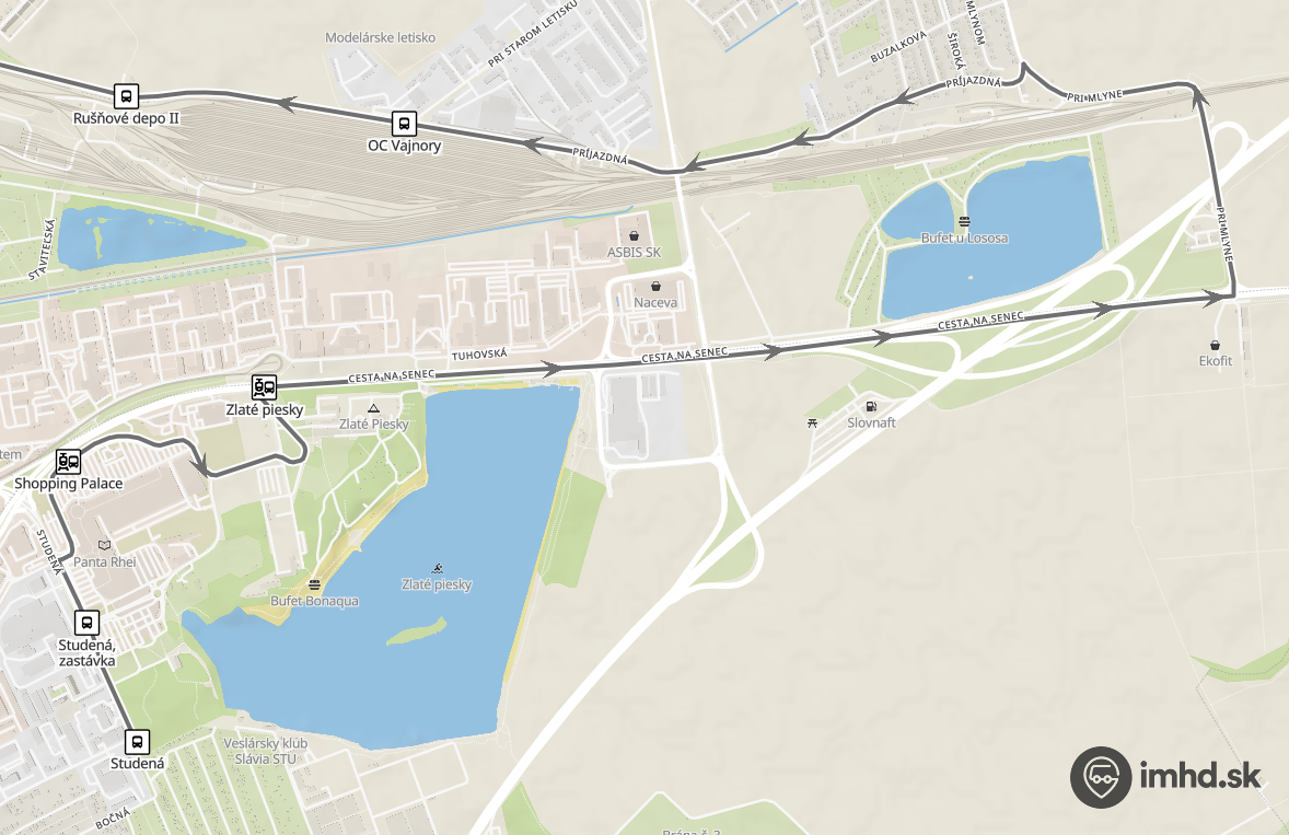 Obchádzková trasa linky 56 medzi zastávkami Zlaté piesky a Rušňové depo II