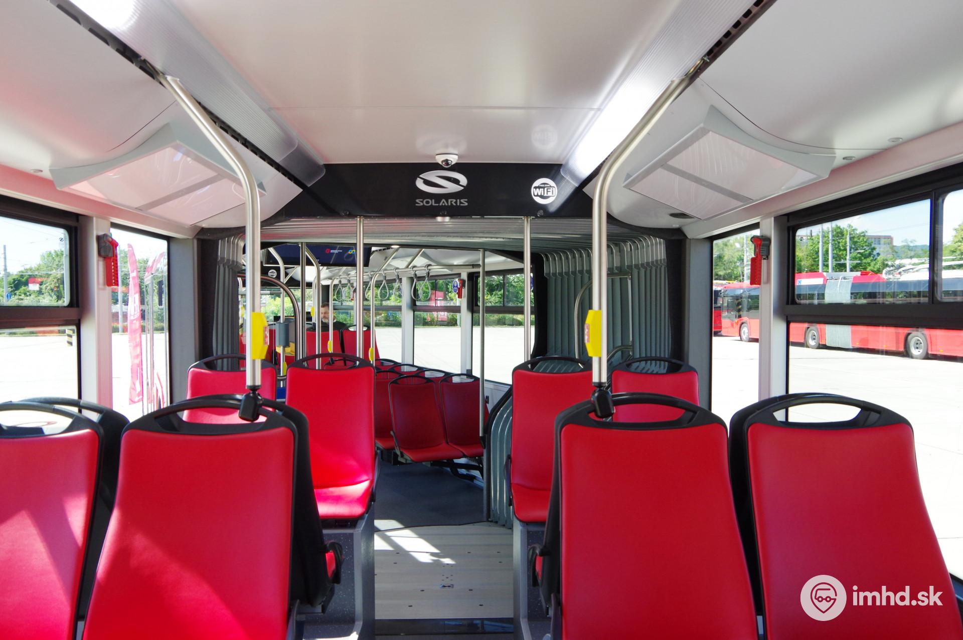 Pohľad z druhého do tretieho článku trolejbusu Škoda-Solaris Trollino 24.