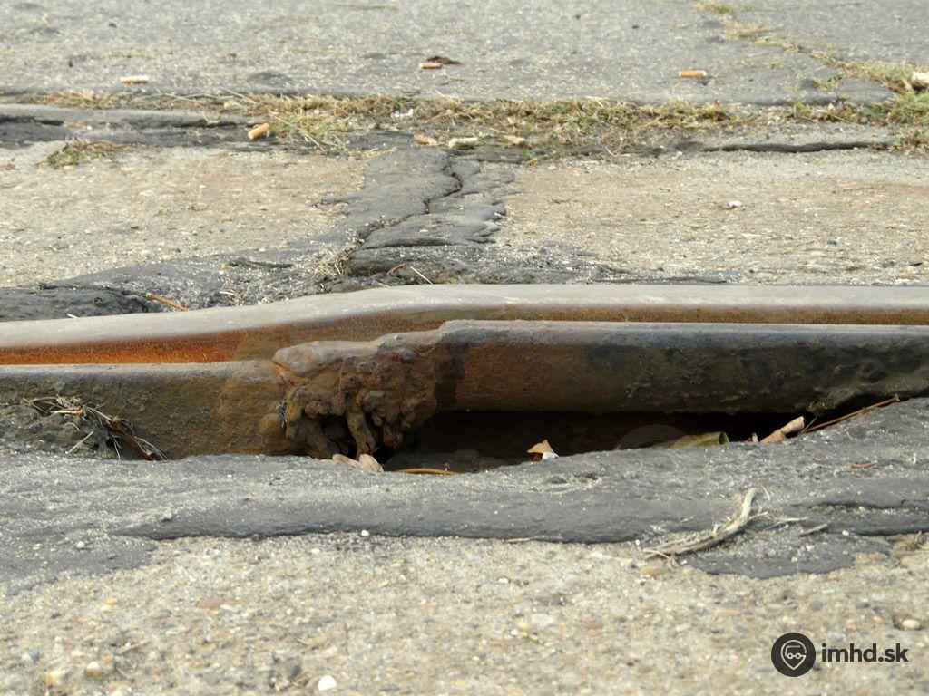 Vydutá koľajnica v Ružinove bez opravy prežila leto 2008, kedy po nej nejazdili električky.