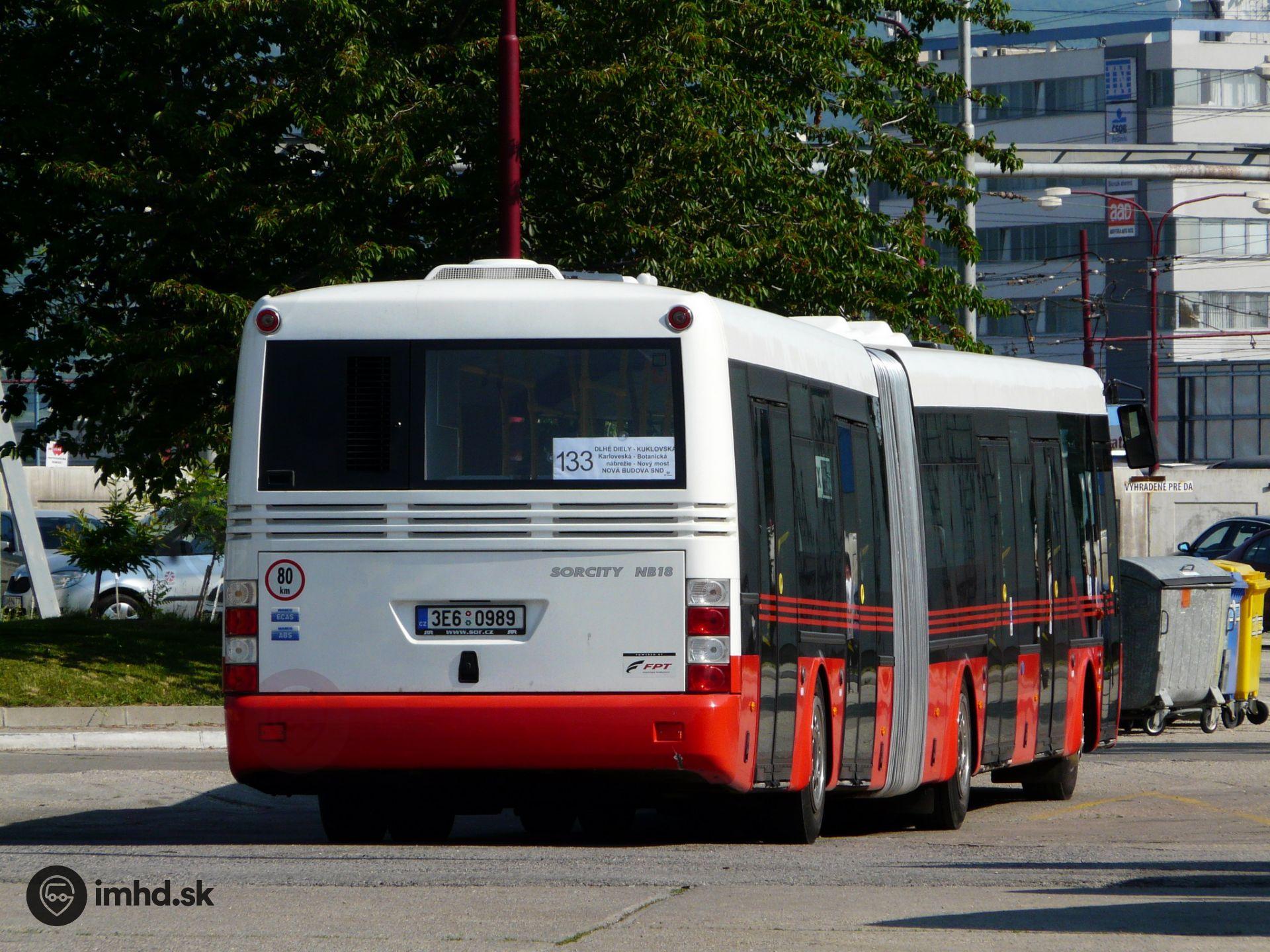 Testovaný autobus SOR City NB 18, čakajúci na poobednú spičku ktorú odjazdí na linke 133.