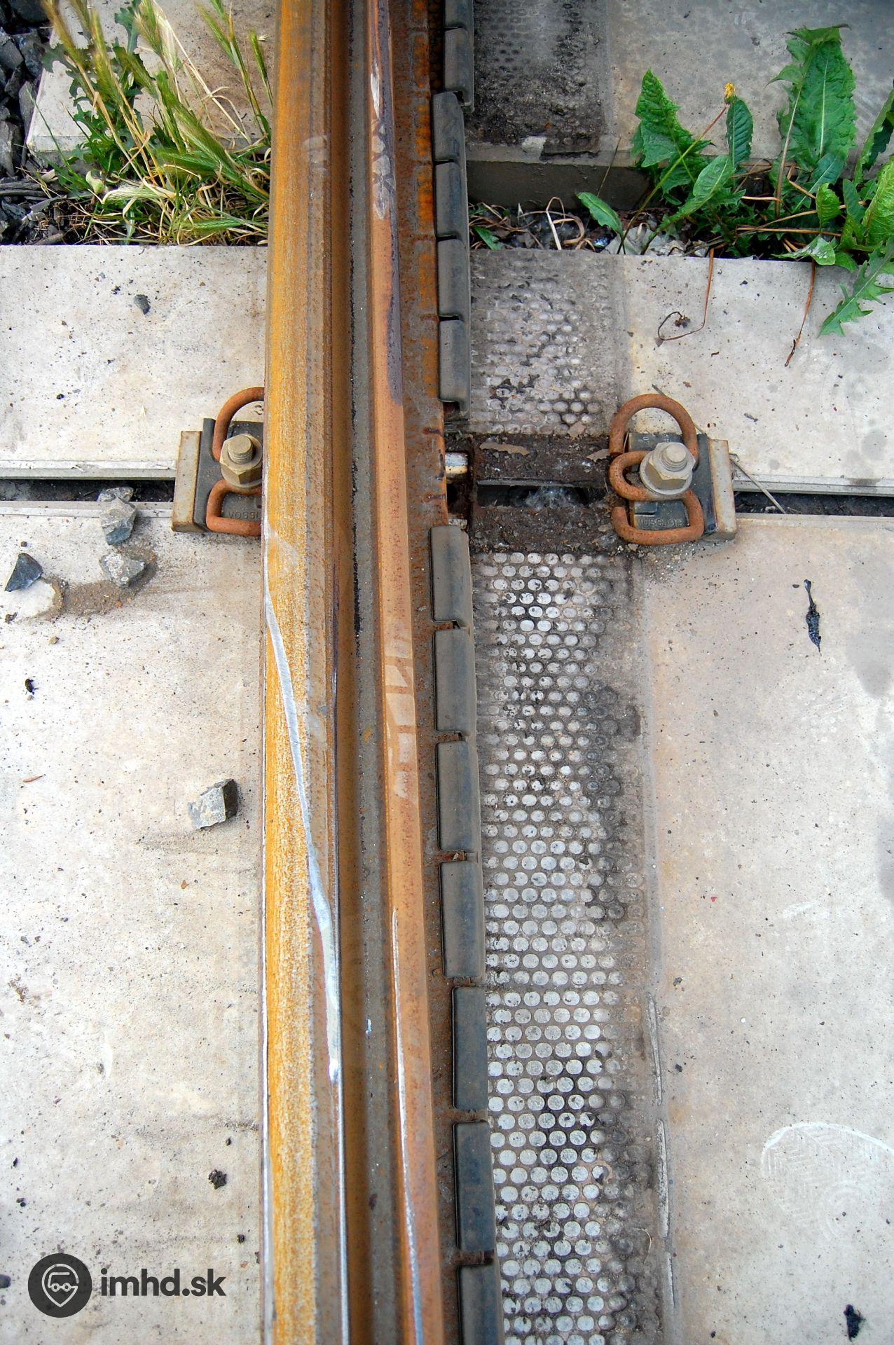 Posunutá koľajnica po vykoľajení električky.