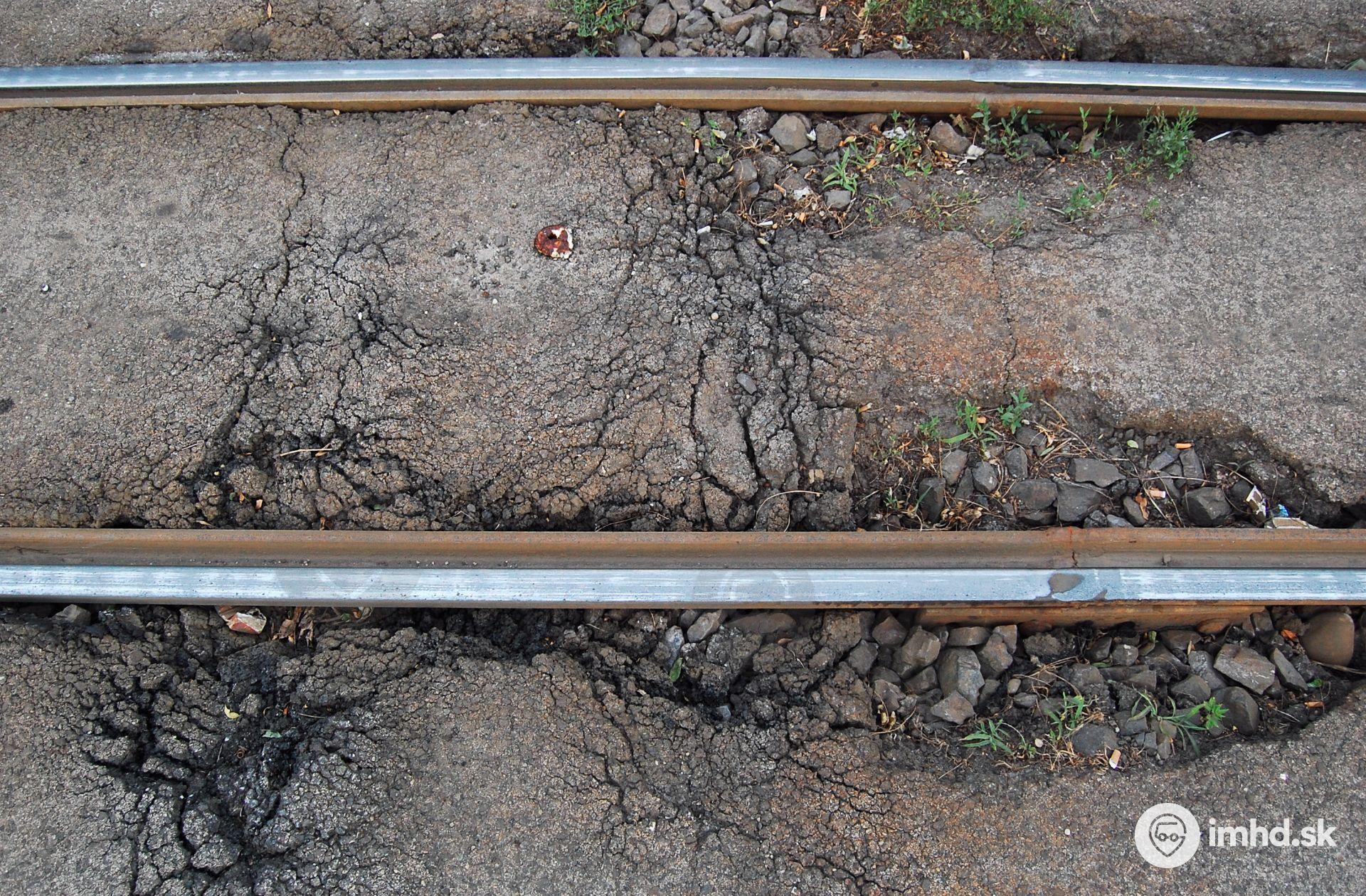 Stav električkovej trate na Krížnej pred jej rekonštrukciou.