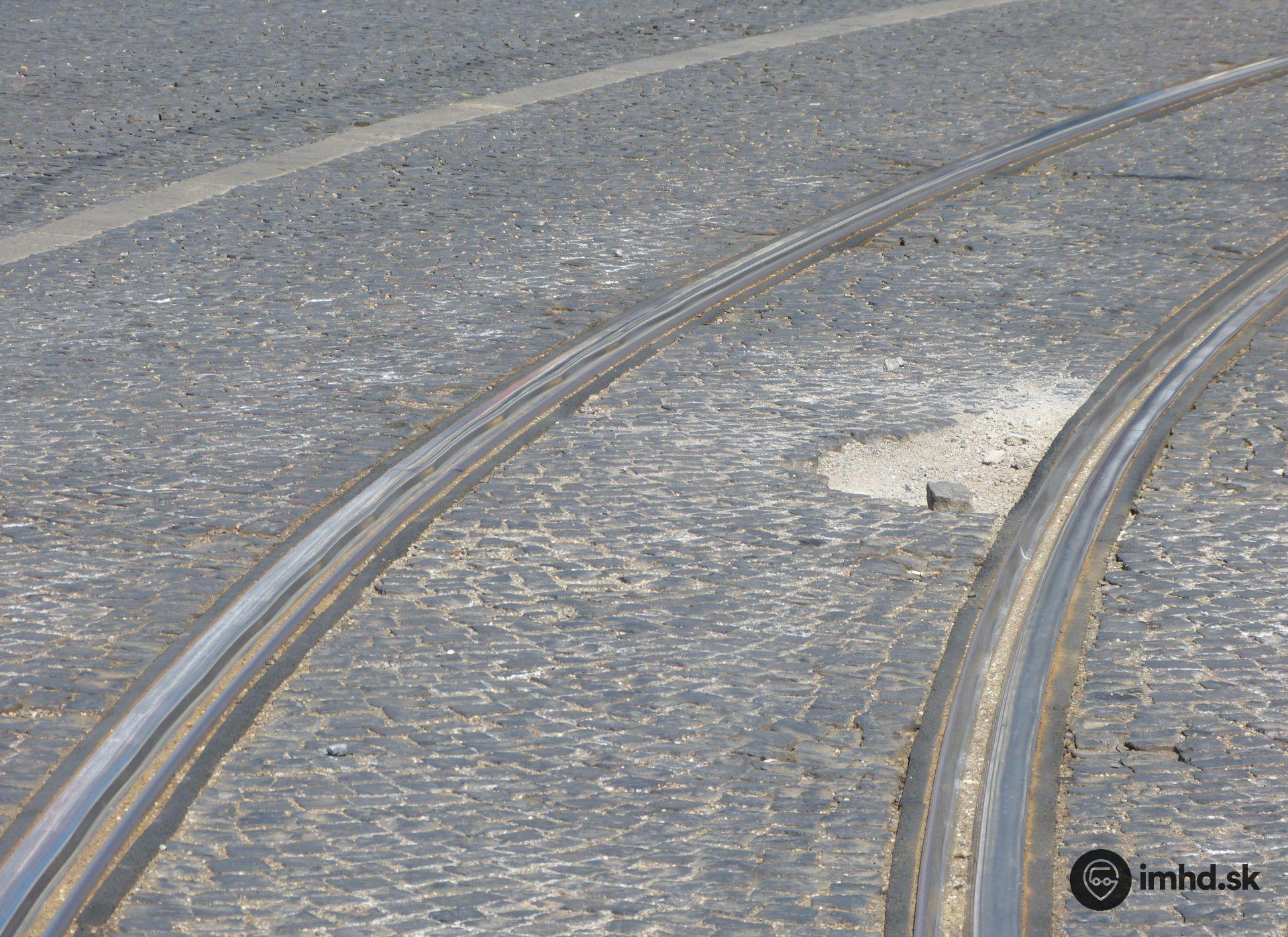 Poškodený koľajový oblúk i dlažba