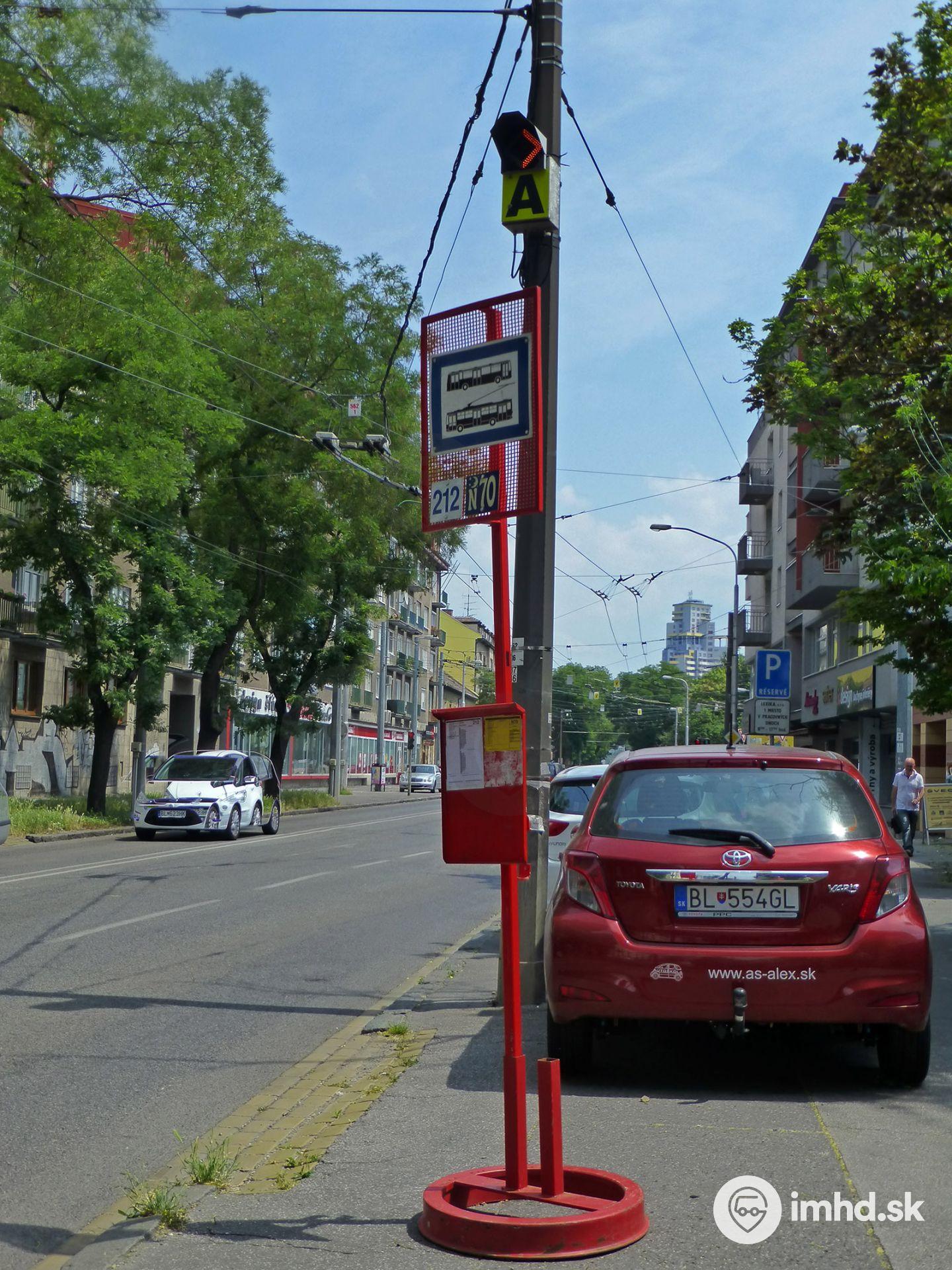 Provizórna zastávka Kvačalova na Záhradníckej ulici.