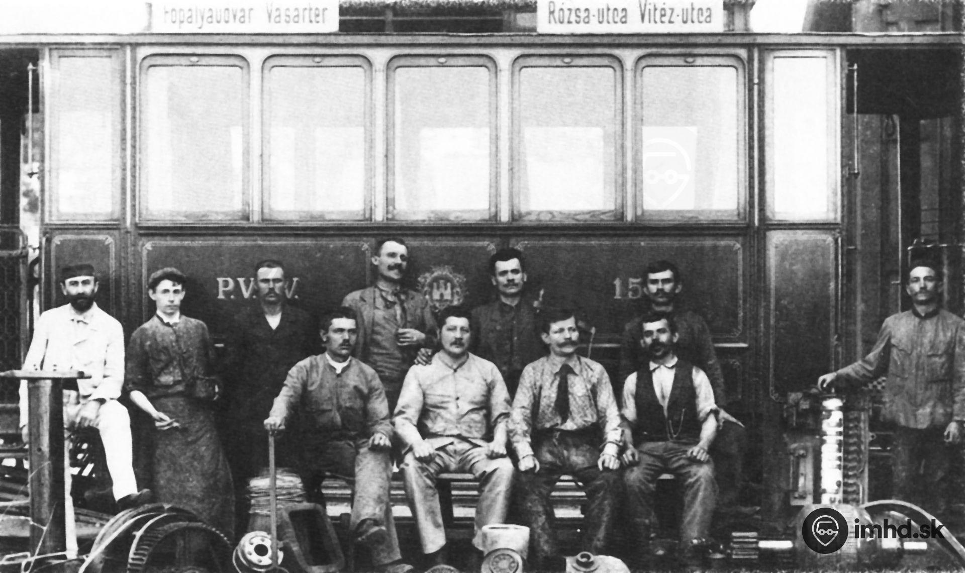 Električka Ganz #15 s pracovníkmi údržby.