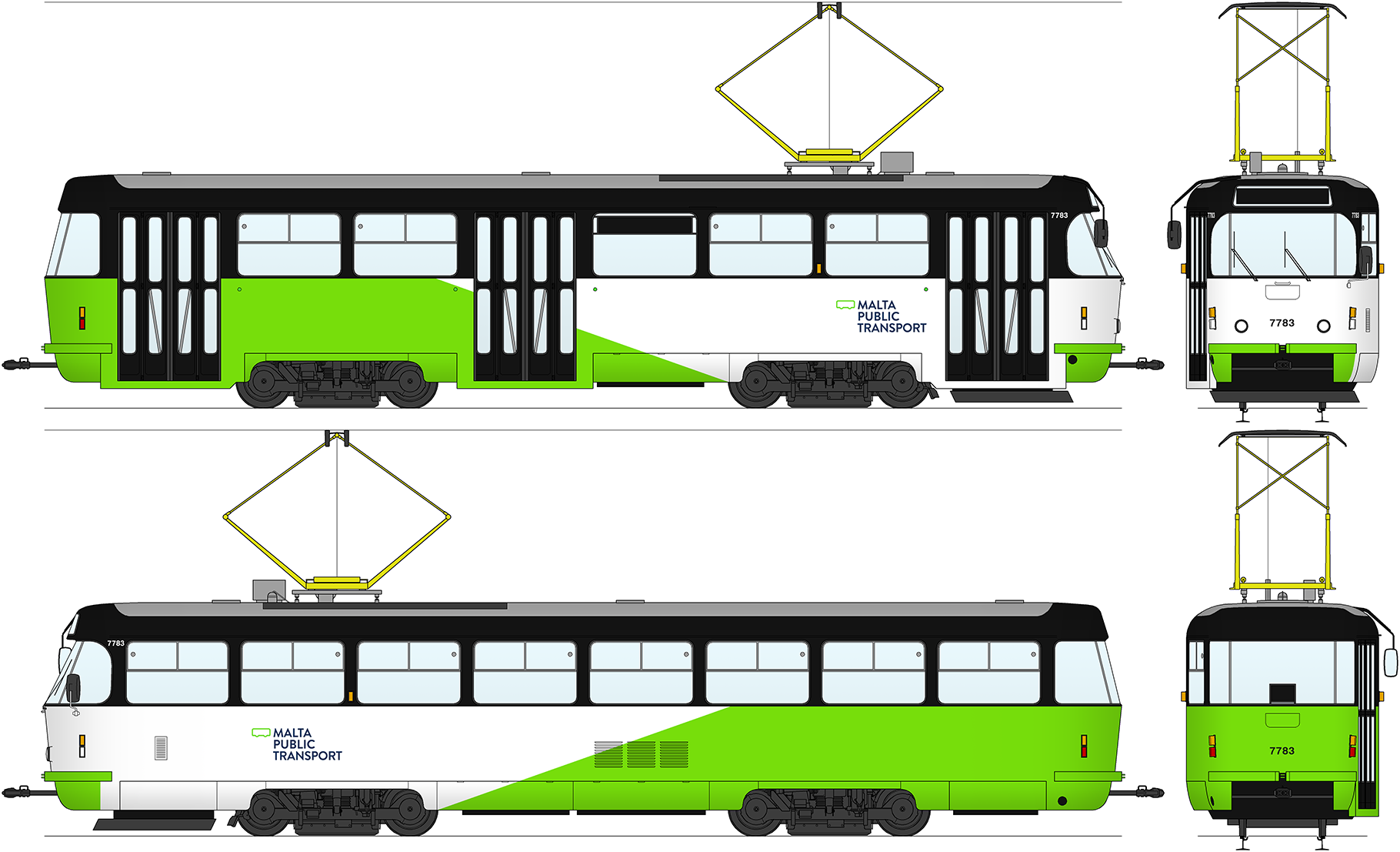 Bratislavská električka v nátere hlavného mesta Malty Valletta. Na bratislavskej električke bol použitý súčasný korporátny náter autobusov na Malte, ktorý je zeleno-biely.